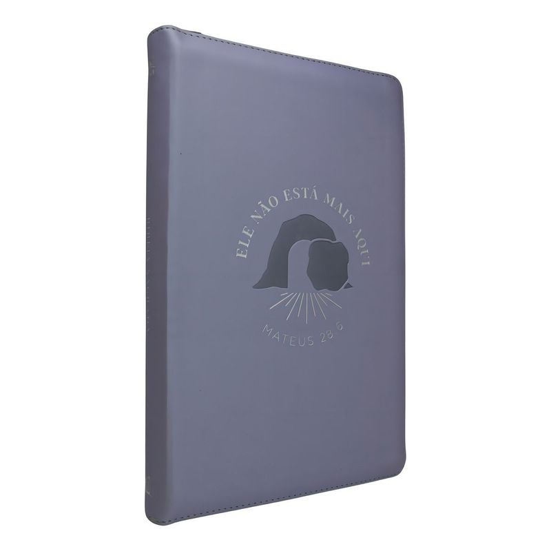 Parte da coleção de Bíblias A promessa, a capa Ele não está mais aqui nos relembra o momento mais triunfante de Jesus: o cumprimento da promessa divina por meio de sua ressureição e a vinda das boas-novas. Conta com uma capa em couro soft cinza, desenho em baixo relevo e um toque especial em hot stamp. Seu grande diferencial é o fechamento em zíper, que traz conforto e praticidade para levá-la a qualquer lugar, seja na igreja ou para carregar na bolsa no dia a dia. Além disso, seu texto está na versão NVI (Nova Versão Internacional), que se baseia na precisão, clareza e uma abordagem contemporânea e, ao mesmo, fiel ao texto original. Nela, você encontrará ainda a fonte Leitura Perfeita. Desenvolvida exclusivamente para a Thomas Nelson Brasil, a Leitura Perfeita é uma fonte singular, moderna, bonita, clara e legível, ao mesmo tempo em que integra os melhores avanços em tipografia de bíblias modernas. O resultado é uma tipologia que traz total conforto na leitura em qualquer tamanho Adquira a Bíblia Ele não está mais aqui e tenha a palavra de Deus contigo todos os dias! Características Texto na tradução NVI (Nova Versão Internacional) Capa em couro soft Fonte leitura perfeita Hot Stamp Acabamento lateral em zíper