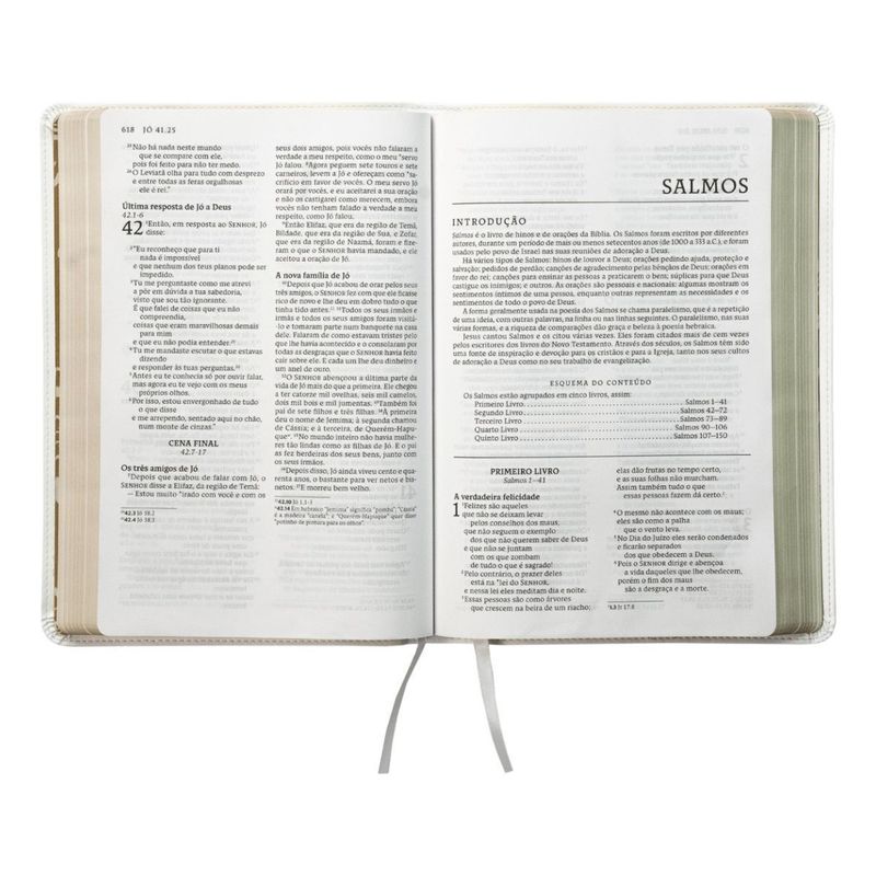 A Bíblia Sagrada é o tesouro pelo qual o próprio Deus nos revela Sua grandeza e misericórdia. Sendo parte da tríplice base da fé católica, as Escrituras desempenham um papel fundamental para a compreensão da salvação em Cristo Jesus e dos ensinamentos do Ressuscitado. A Palavra de Deus preserva viva a memória de nossas Tradições e nos possibilita caminhar em direção à vontade Dele.Trazendo a linguagem acessível da Nova Tradução na Linguagem de Hoje (NTLH), nesta versão você encontrará todos os livros da Bíblia católica seguindo a mesma filosofia de tradução, além de recursos valiosos, como introduções, notas explicativas, palavras de orientação e diversas outras ferramentas que facilitam a compreensão e o estudo das Sagradas Palavras de Nosso Senhor. Esta edição conta com a fonte Leitura Perfeita, uma tipografia inspirada nas clássicas Bíblias católicas, proporcionando leveza e conforto na leitura do texto sagrado.Recursos:Introduções: Cada livro bíblico é precedido de uma introdução, trazendo informações importantes e um esboço de seu conteúdo.Notas: Notas no rodapé procuram explicar o que não esteja claro no texto; algumas trazem o significado de palavras; outras, ainda, oferecem informações culturais ou históricas. As notas são indicadas no texto por uma letra minúscula.Referências: Indicam outros lugares na Bíblia em que aparece a mesma ideia. São indicadas no texto por um número.Vocabulário: Os verbetes relacionados nesse auxílio trazem a explicação dos termos ou das expressões que, no texto da Bíblia, receberam um asterisco (*).Mapas: Diversos mapas referentes ao Antigo e ao Novo Testamento.Palavras de orientação e consolo: A Bíblia tem palavras adequadas para qualquer situação da vida, e uma série delas está listada neste auxílio.O que a Bíblia diz sobre o perdão de Deus: A mensagem central da Bíblia é o perdão que temos por meio de Jesus Cristo, e neste auxílio encontram-se as passagens principais sobre o tema.