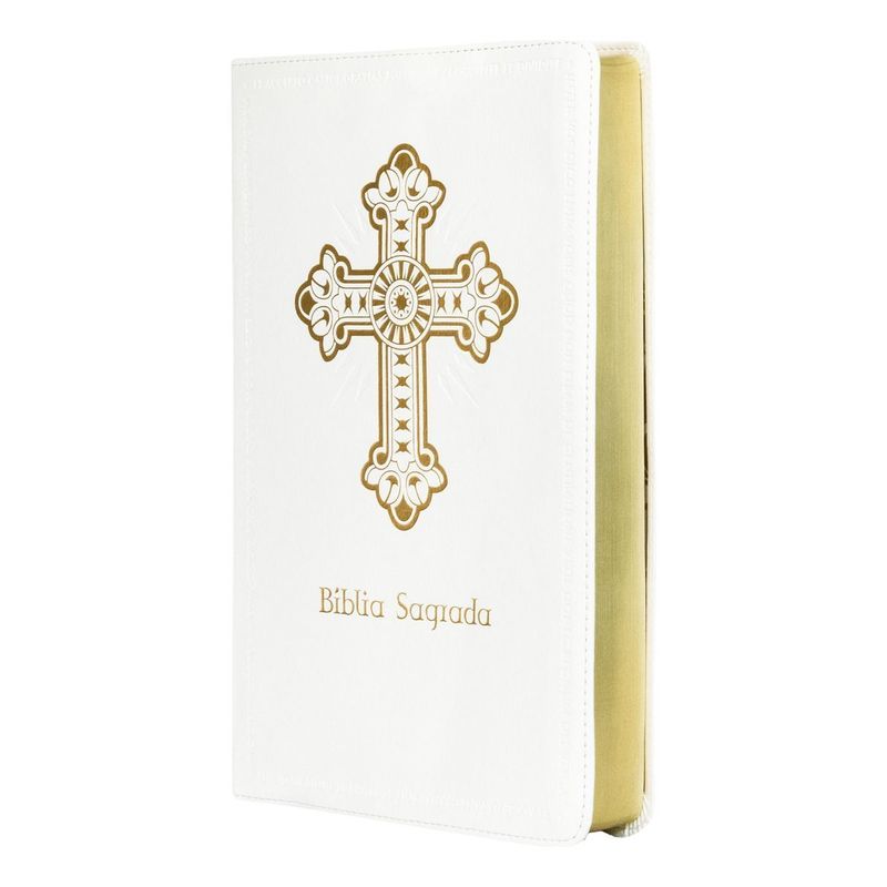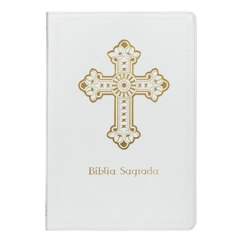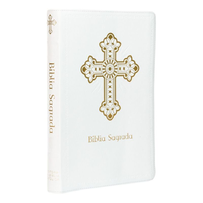 Título do livro : Bíblia Sagrada Católica Letra Grande Cruz Couro-soft branca Leitura Perfeita
