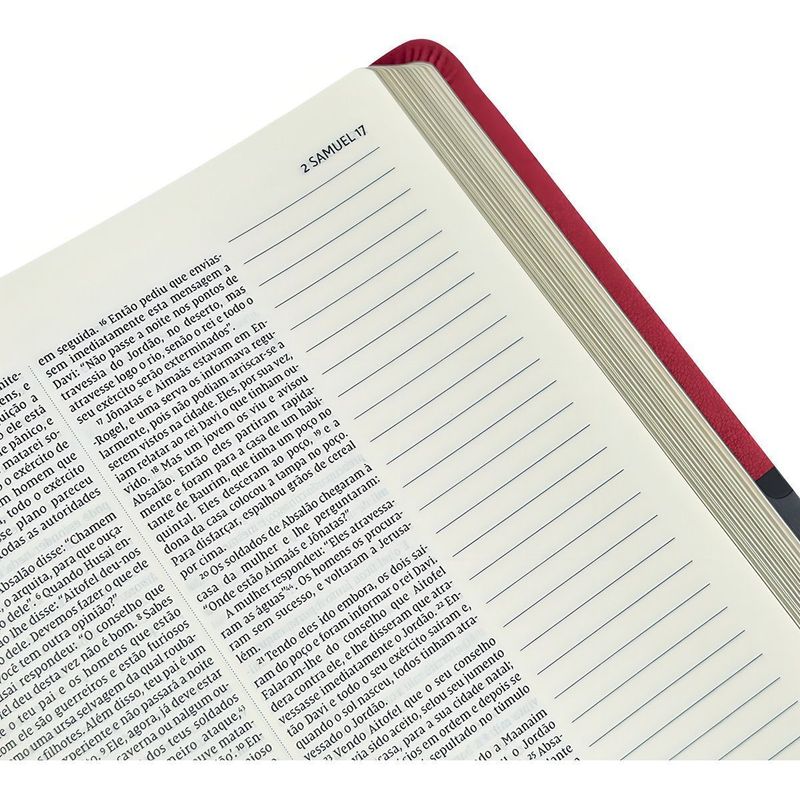 Quantas vezes estamos na igreja e ouvimos algo tão tocante que queremos registrar, mas não podemos porque não temos onde anotar? Você até gostaria de escrever na própria Bíblia, para que aquela informação complementasse seus estudos bíblicos, mas ela não tem espaço. Esta Bíblia chegou para resolver esse problema. Pensada para você que gosta de registrar comentários e anotações que enriqueçam a compreensão do texto bíblico, Sua Bíblia foi elaborada para incluir anotações sem prejudicar a leitura das Escrituras. Com papel diferenciado que dá mais destaque às suas anotações e mais visibilidade ao texto, graças a uma fonte especial desenvolvida pela Thomas Nelson Brasil, esta é a ferramenta ideal para aqueles que desejam aprofundar seu relacionamento com a Palavra.