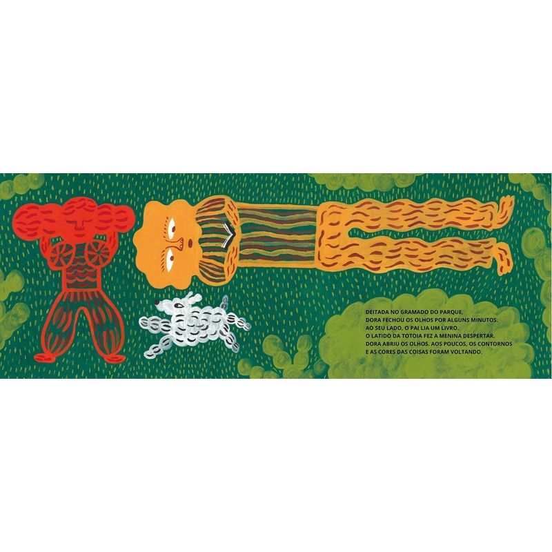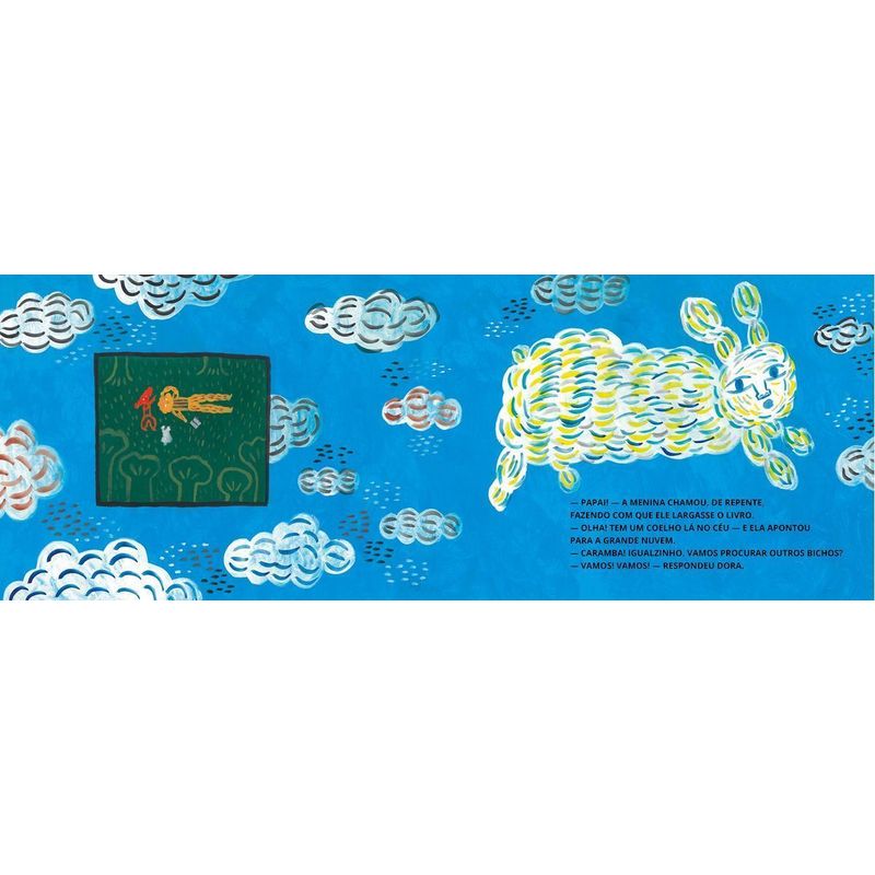 Esta singela história é sobre Dora, uma menina que adora olhar para o céu e apreciar os bichos que se formam nas nuvens. Seu pai não consegue olhar e enxergar como ela. Mas aos poucos, os dois vão descobrindo juntos uma forma de olhar, sentir e brincar com as nuvens. Terceiro livro infantil do premiado escritor carioca Marcelo Moutinho, com inusitadas e criativas ilustrações da cearense Luci Sacoleira.