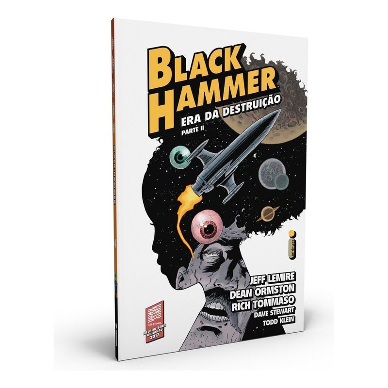 No último volume da aclamada série Black Hammer, revelações colocam o equilíbrio do universo em risco Criada por Jeff Lemire e Dean Ormston, a premiada série Black Hammer conquistou o público e a crítica ao unir elementos de grandes clássicos dos quadrinhos, tramas únicas e personagens complexos. Sucesso inquestionável, agora a intensa jornada se encaminha para o desfecho, quando finalmente vamos descobrir o que aconteceu com os maiores heróis de Spiral City. Após derrotarem o poderoso e maligno Antideus, eles caíram no esquecimento ao se verem presos em um estranho purgatório: uma fazenda isolada e misteriosa da qual não conseguem sair. Por dez anos viveram como uma família, escondendo sua verdadeira natureza dos habitantes locais. Até que uma visita vinda de seu antigo mundo consegue chegar até eles, trazendo consigo a esperança de voltarem para casa, mas também o prenúncio de uma era de caos e destruição. Neste quarto e último volume, mais segredos vêm à tona, e quando a verdade sobre o que aconteceu naquela batalha fatídica é revelada, o mundo dos ex-heróis muda completamente outra vez. Com o equilíbrio do universo sob ameaça, eles serão obrigados a decidir se o preço que pagaram para salvar Spiral City valeu a pena.