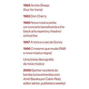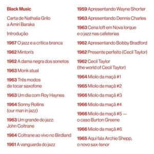 A maioria dos críticos de jazz até agora são americanos brancos, enquanto os principais músicos não” Black Music é um dos exercícios mais radicais e selvagens de crítica musical que já foi posto em prática. Nestes ensaios, resenhas, entrevistas, encartes, crônicas e impressões pessoais publicados entre 1959 e 1967, Amiri Baraka (LeRoi Jones) retrata a florescente cena do free jazz, um movimento que envolveu o aprofundamento das inovações sonoras do bebop e a recuperação do jazz como expressão autêntica da cultura afro-estadunidense em uma época em que seu sucesso comercial a tornava um gênero padronizado e palatável para a amérikkka branca.Figura central e unificadora do movimento beat nos anos 50 e Black Power nas décadas seguintes, Baraka lança mão de uma linguagem elétrica e furiosa que reflete a liberdade de improvisação do free jazz para deixar claro que essa música só pode ser compreendida como parte de um conjunto de experiências, que ao longo do século XX, moldaram uma nova consciência do que significava ser negro nos Estados Unidos. E é por isso que os seus intérpretes, entre os quais se destacam John Coltrane, Ornette Coleman, Archie Shepp, Sun Ra, Thelonious Monk, Albert Ayler, Pharoah Sanders, Sonny Rollins, Don Cherry, Wayne Shorter e Cecil Taylor, devem ser considerados, além de grandes músicos: “intelectuais ou místicos, ou ambos”.Baraka escreve com a paixão e o lirismo que só podem vir de um crítico de jazz que investe intransigentemente nas dimensões sociais e estéticas da música.WBGO (Rádio Pública de Newark, Nova Jersey)Jones aprendeu – e isso tem sido muito raro na crítica de jazz – a escrever sobre música como artista.Nat Hentoff (historiador e crítico musical estadunidense)