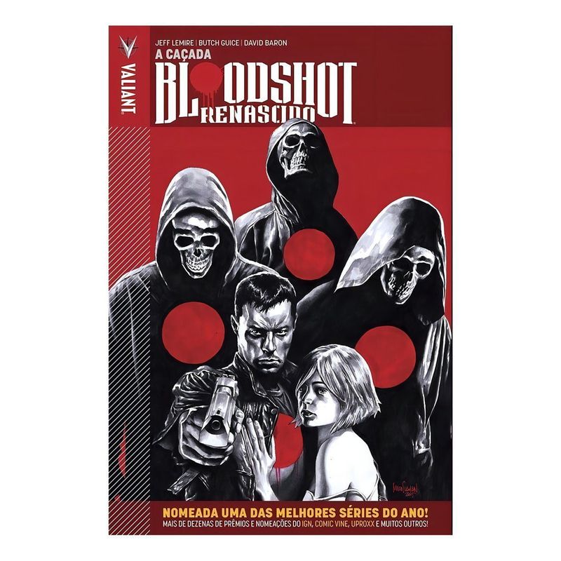A caçada começou… Bloodshot está caçando. Determinado a parar o violento reinado de terror que aflige o Colorado, Bloodshot viaja pelas Montanhas Rochosas para destruir os nanites remanescentes que causaram o surgimento de assassinos em massa pelo estado. Mas será que as drogas, bebidas e as estridentes visões insanas que rodeiam sua mente darão um fim em sua jornada antes que ela comece? Embarque nesta viagem em que o roteirista campeão de vendas do New York Times, Jeff Lemire (The Valiant, Colorado), e o artista nomeado ao Eisner, Butch Guice (Ninjak, Soldado Invernal) começam o assombroso segundo arco da série eleita como uma das melhores pelo IGN, Uproxx, Comic Vine e muitos outros! Contém as edições 6 a 9 de Bloodshot Reborn.