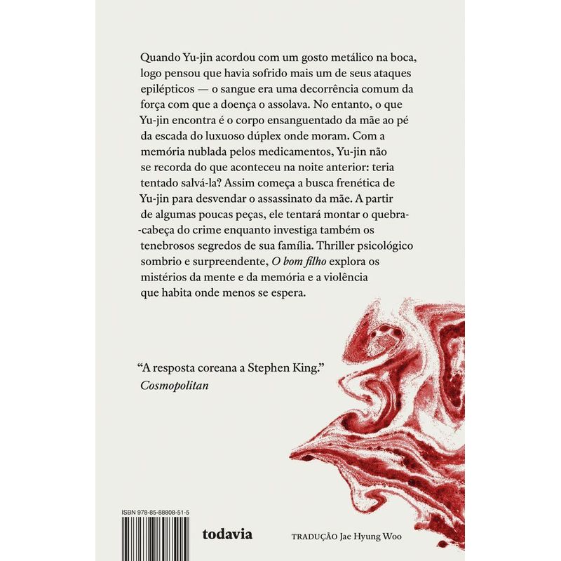 O bom filho, fenômeno literário que rendeu a You-jeong Jeong o apelido de “Stephen King coreana”, é um thriller psicológico e um mergulho no que há de mais sombrio na alma humana. A cada resposta abrem-se mais perguntas. Neste romance perturbador e surpreendente o terror se esconde onde menos se espera.
