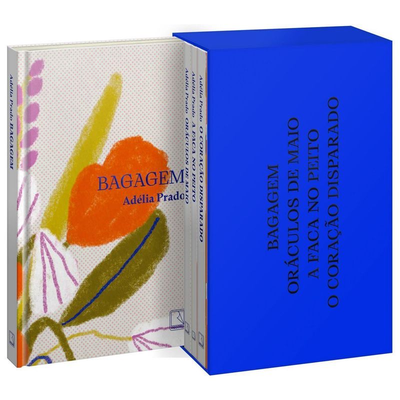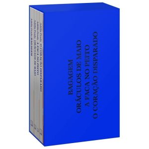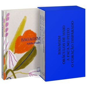 “Quatro grandes obras da premiada Adélia Prado, uma das maiores poetas brasileiras da modernidade, reunidas neste box de luxo – com formato diferenciado, novas capas impressas em papel especial – que ainda conta folheto com conteúdo adicional inédito e exclusivo. A poesia de Adélia Prado é um marco da literatura brasileira. Neste box, estão reunidos os quatro livros mais decisivos de sua trajetória poética: Bagagem, O coração disparado, A faca no peito e Oráculos de maio. Ele contém ainda um folheto com fotos e um texto inédito sobre a obra de Adélia, escrito pela atriz e também poeta Elisa Lucinda. Bagagem (152 pág.) Primeiro livro de Adélia Prado, publicado em 1976, Bagagem mostra o talento que faria da escritora uma das mais aclamadas poetas da literatura brasileira. O estilo inconfundível dos poemas não traduz somente a lenta maturação de uma obra sendo idealizada por quatro décadas; revela uma poeta dotada de autocrítica, cultivada lentamente e disposta a correr riscos. “Adélia é lírica, bíblica, existencial, faz poesia como faz bom tempo: está à lei, não dos homens, mas de Deus.” – Carlos Drummond de Andrade “Adélia é uma poeta da linguagem escrita. Mas escrita ditada pelos ritmos da voz, longamente cultivada na liturgia, na conversa da cidade de interior, na memória familiar, nas canções populares e na declamação dos poemas. A sua concepção poética converge para o verbo.” – Augusto Massi O coração disparado (128 pág.) Vencedor do Prêmio Jabuti em 1978, O coração disparado consagrou a autora como uma das grandes vozes da poesia brasileira. Nele, Adélia aprofunda um dos temas que se tornariam marca de sua obra: a religiosidade. “A experiência religiosa é uma experiência poética. A poesia aponta para o mesmo lugar para onde a fé nos leva. São experiências de natureza comum. Tanto é verdade que a linguagem é a mesma. Os textos míticos são paradoxos, falam por metáforas, porque falam do indizível. A poesia é a mesma coisa”, explica Adélia. A faca no peito (88 pág.) Publicado pela primeira vez em 1988, A faca no peito é mais uma obra imprescindível da poesia brasileira. O livro é centrado em Jonathan, personagem que se refere tanto a Deus quanto ao sexo masculino ou à crença religiosa. Ele congrega a promessa e a fuga, a realização e o desejo, a eterna busca. “De um único modo se pode dizer a alguém: ‘não esqueço de você’. A corda do violoncelo fica vibrando sozinha sob um arco invisível e os pecados desaparecem como ratos flagrados. Meu coração causa pasmo porque bate e tem sangue ele e vai parar um dia e vira um tambor patético de falas no meu ouvido ‘não esqueço de você’. Manchas de luz na parede, uma jarra pequena com três rosas de plástico. Tudo no mundo é perfeito e a morte é amor.” Oráculos de maio (96 pág.) Em Oráculos de maio, Adélia Prado valoriza o cotidiano e o texto oralizado, fazendo uma homenagem a várias figuras religiosas, sagradas e profanas. Segundo Elisa Lucinda, “sua concepção poética mais revolucionária é o conceito aparentemente blasfêmico, mas fundado no mais genuíno amor, é a consciência de que o erótico não nos afasta de Deus e de que estar em contato com ele é, sobretudo, uma experiência sensorial”. “