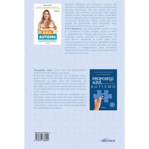 Box com dois livros sobre autismo, S.O.S Autismo e Própósito Azul. O livro S.O.S Autismo traz discussões sobre: O que é o autismo e suas causas; Como é feito o diagnóstico, formas de brincar com as crianças; Como efetuar o tratamento de uma forma eficiente; Como lidar com comportamentos incomuns; O aprendizado e a inclusão escolar. Um guia completo e indispensável para entender, tratar e conviver com crianças e adolescentes no espectro autista. E o Propósito Azul conta com as atualizações mais recentes sobre o autismo. A escrita expõe trechos de vivências reais, que a maioria dos familiares de pessoas autistas vivenciam na pele, além de intercalar os acontecimentos da narrativa com explicações de médicos, cientistas e profissionais da área.