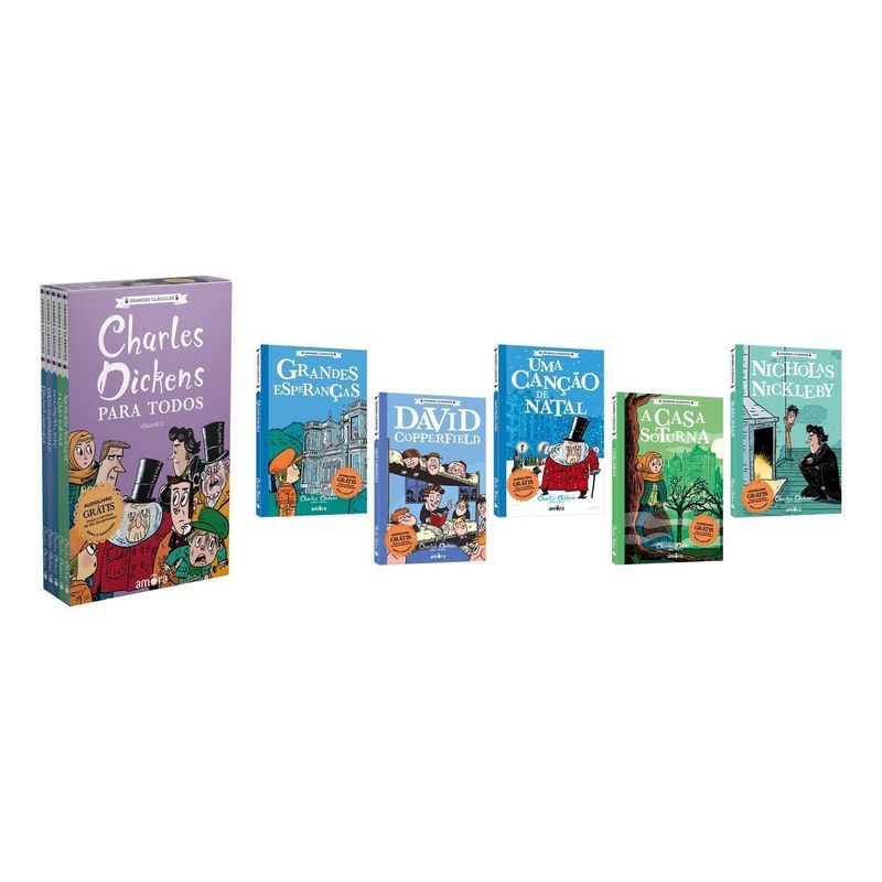 Charles Dickens nasceu na cidade de Portsmouth (Inglaterra), em 1812. Como muitos de seus personagens, sua família era pobre e ele teve uma infância difícil. Já adulto, tornou-se conhecido em todo o mundo por seus livros. Ele é lembrado como um dos escritores mais importantes de sua época. Conheça as mais incríveis histórias de Charles Dickens! Dividida em 2 volumes, essa coleção apresentar aos jovens leitores aventuras eletrizantes e enredos instigantes. Os clássicos de Dickens são atemporais A Casa Soturna David Copperfield Grandes Esperanças Nicholas Nickleby Uma Canção de Natal