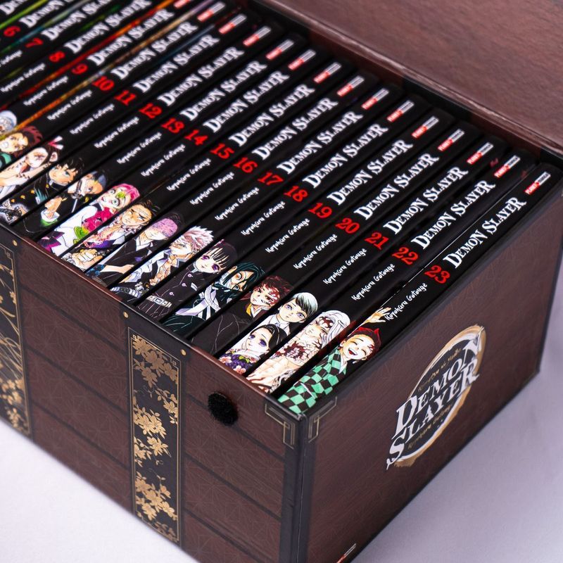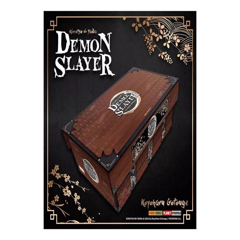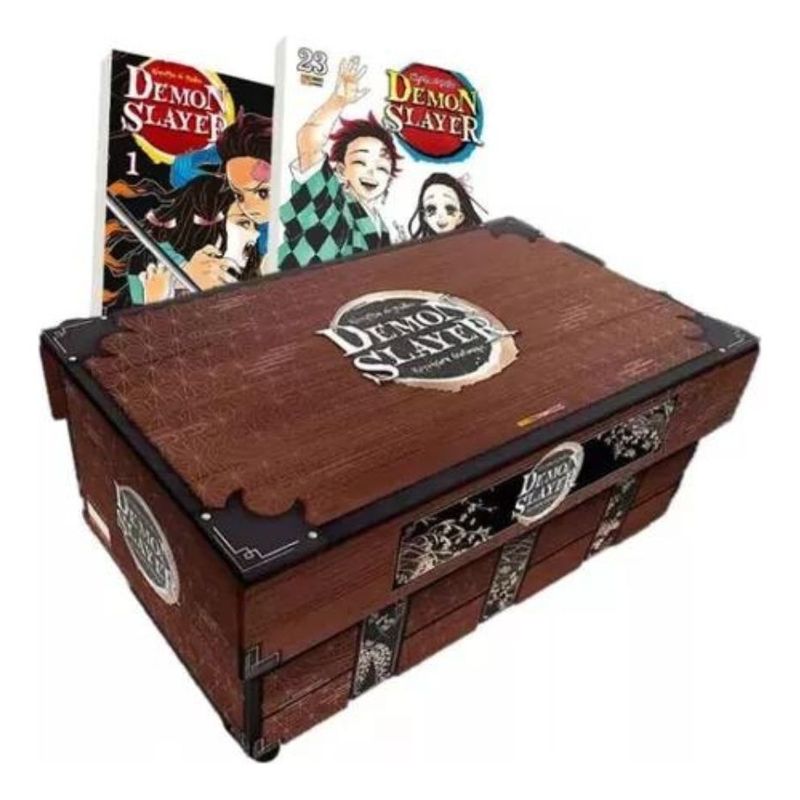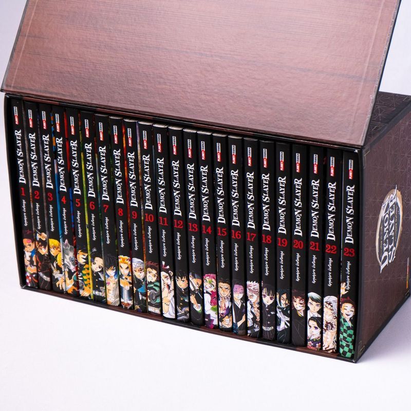 Box especial com a coleção completa de Demon Slayer – Kimetsu No Yaiba! Estamos na Era Taishou. O dia-a-dia pacato de Tanjiro, um gentil garoto que vende carvão, se transforma radicalmente quando sua família é assassinada por um demônio. A única sobrevivente é Nezuko, sua irmã mais nova. Porém, agora, ela se transformou em um Oni. Diante dessa tragédia, os dois irmãos partem em uma jornada para derrotar o Oni que matou sua mãe e irmãozinhos. E assim tem início uma aventura sanguinolenta de espadachins!