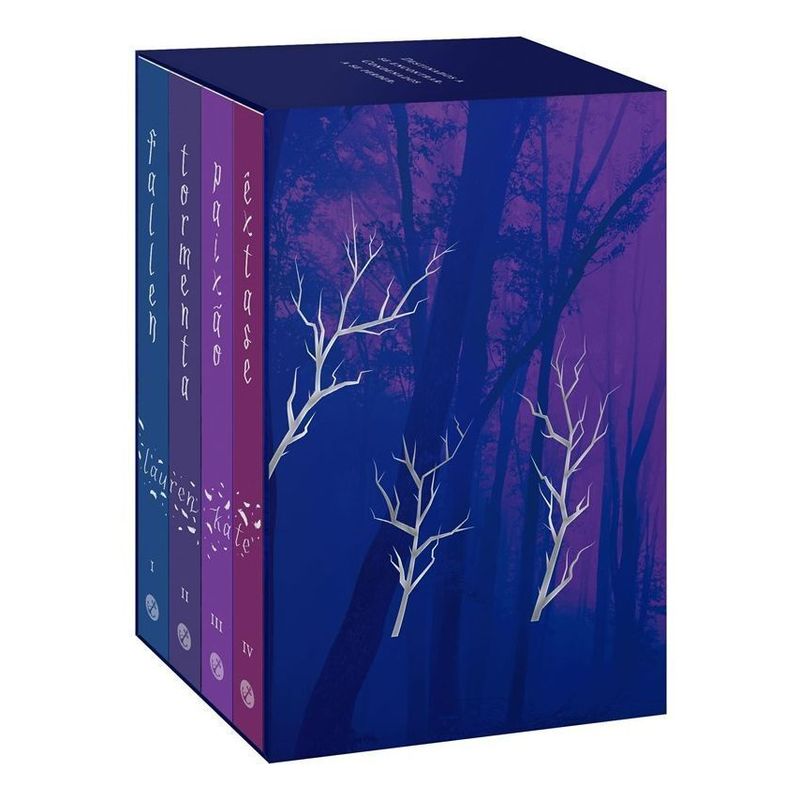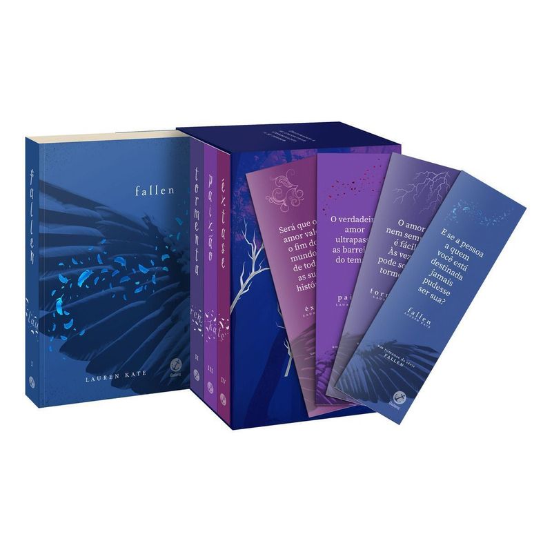 Inesperado. Não correspondido. Proibido. Eterno. Todo mundo tem sua própria história de amor. Best-seller mundial e ícone de uma geração, a série de romance paranormal Fallen está de volta em um box especial com capas novas e brindes exclusivos! Tudo havia começado de maneira bem inocente, apenas dois adolescentes indo dar uma volta perto do lago. Mas não demorou até que Luce começasse a sentir as sombras espreitando sobre eles. Então os lábios de Trevor tocaram os dela, o calor invadiu seu corpo e os olhos dele ficaram brancos de medo… Segundos depois, a vida que ela conhecia tinha virado cinzas. Única testemunha do acidente, Lucinda Price parece não ter lembranças do que aconteceu, o que faz com que todos ao seu redor se perguntem se foi mesmo um acidente. Sem evidências suficientes para inocentá-la, mas também sem provas contundentes para condená-la, Luce acaba sendo enviada para o reformatório Sword & Cross. Agora, presa em um colégio interno onde celulares são proibidos, o acesso à internet é supervisionado e câmeras de vigilância monitoram todos os passos dos alunos, a jovem vai precisar fazer novas amizade no reformatório — e por sorte nem todos parecem tão hostis. Cam, na verdade, até que é bastante amigável, ao contrário de Daniel, o belo e misterioso Daniel Grigori, que atraiu a atenção de Luce desde seu primeiro dia na Sword & Cross. Mas o rapaz não parece reconhecê-la, tampouco demonstra qualquer interesse ou sequer familiaridade. Por outro lado, Cam parece tão interessado em Luce quanto ela em Daniel. Ainda assim, a jovem continua inexplicável e irresistivelmente atraída por ele. É como se já o tivesse conhecido antes… Seria possível? Mas de onde? Porém, esses não são os únicos mistérios na vida de Luce. Ela guarda um segredo, um que nem mesmo alguém enviado para um lugar como Sword & Cross poderia descobrir. Mas segredos quase nunca permanecem escondidos, e as sombras de Luce não são fáceis de ocultar. Em breve, a verdade que todos escondem recairá sobre suas cabeças, e a vida de Luce jamais será a mesma. Excitante, sombrio e romântico, Fallen é, ao mesmo tempo, um thriller instigante e uma inesquecível história de amor. “Sexy, fascinante e assustador. Eu amei, amei, amei!” – P.C. Cast