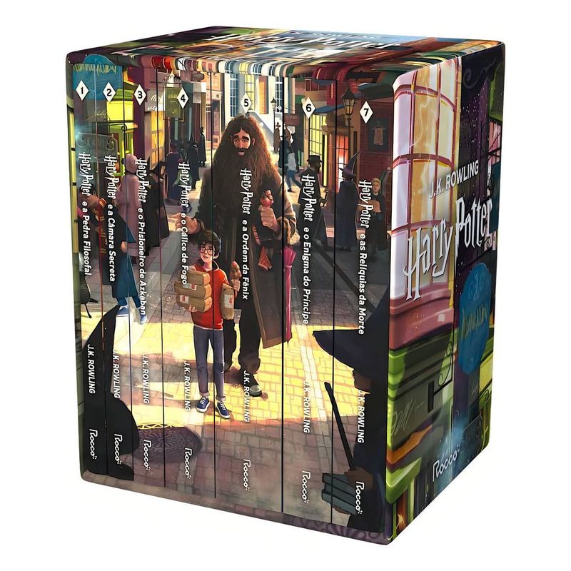 Novo box com 7 livros com capas e ilustrações inéditas da Pottermore e mais de 20 adesivos exclusivos grátis. A vida do menino Harry Potter não tem um pingo de magia. Ele vive com os tios e o primo, que não gostam nem um pouco dele. O quarto de Harry é, na verdade, um armário sob a escada, e ele nunca comemorou um aniversário sequer em onze anos. Até que, um dia, Harry recebe uma carta misteriosa, entregue por uma coruja: um convite para estudar num lugar incrível chamado Escola de Magia e Bruxaria Hogwarts. Lá ele vai encontrar não só amigos, esportes praticados em vassouras voadoras e magia para todo lado, como também seu destino: ser um aprendiz de feiticeiro até o dia em que terá que enfrentar a pior força do mal, o bruxo que assassinou seus pais. Mas, para isso, Harry precisará passar por uma série de desafios e enfrentar inúmeros perigos. Em sete livros que se tornaram o maior fenômeno editorial de todos os tempos, com mais de 450 milhões de exemplares vendidos e traduções em 78 idiomas, Harry Potter não é exposto apenas a batalhas e feitiços. Ele precisa superar traições, surpresas e, sobretudo, aprender a lidar com os próprios sentimentos. O amor, a amizade e claro, uma boa dose de magia e imaginação, são os elementos-chave para da maior saga bruxa de todos os tempos. Harry Potter é a série juvenil mais vendida de todos os tempos e uma nova série para o streaming da MAX está entrando em produção para ser lançada em nos próximos anos. Essa caixa traz os sete livros com texto integral, em acabamento brochura, com orelhas. Acompanha folha de adesivos destacáveis com mais de 20 ilustrações.