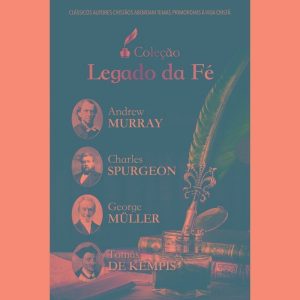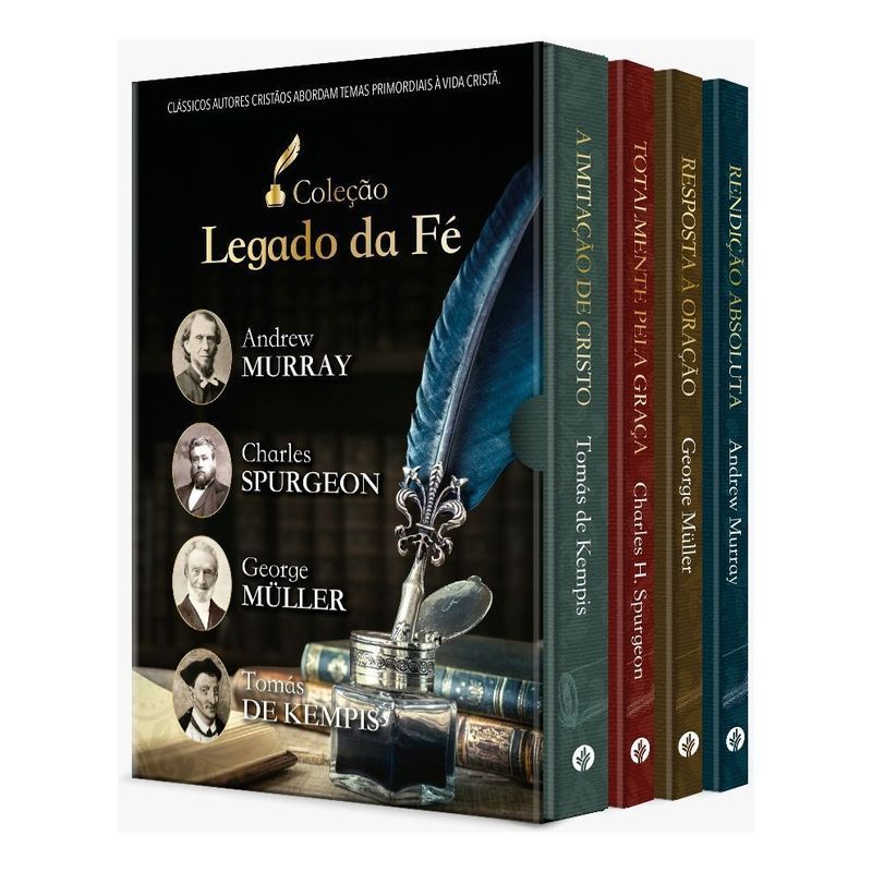 Publicado entre 1379 a 1471, A imitação de Cristo atravessa os séculos como uma das referências para o Cristianismo. Ela ressalta a pessoa e a vida de Cristo como modelo supremo para todo aquele que entrega sua vida a Deus. A obra enfatiza a vida espiritual e interior, em detrimento das vaidades terrenas, e apresenta reflexões práticas para a vida cristã: orientações para a leitura das Escrituras; utilidade das adversidades; submissão às autoridades; advertência contra a tentação e exortação para se resistir a ela. TOMÁS DE KEMPIS1380–1471Foi um monge agostiniano alemão e teólogo cristão do século 15. No mosteiro do monte de Santa Agnes, onde permaneceu por mais de 70 anos, Kempis tornou-se um copista e escritor profícuo. A imitação de Cristo é a obra mais proeminente desse autor.Nesta obra envolvente, Murray apresenta os segredos de uma vida de vitória. Ele desperta a compreensão do que significa ser um cristão verdadeiramente rendido a Deus. A obra se propõe a ser um agente de mudança que nos leva a crescer em rendição a Deus e a experimentar mais dele hoje. Entenda como o Senhor realiza essa rendição e mantém todos que a buscam.ANDREW MURRAY1828–1917Nasceu na África do Sul. Como pastor e evangelista, levou consigo um reavivamento que abalou o país. Seu ministério enfatizava a necessidade de os cristãos habitarem em Cristo e era também caracterizado por profunda e ardente espiritualidade e ação social.Um dos principais escritos do “Príncipe dos pregadores” do século 19, Charles H. Spurgeon. Enfatiza a maravilhosa verdade de que não há moeda de troca que possamos oferecer nem mérito humano na busca e conquista da imerecida salvação. É exclusivamente pela graça de Deus que somos salvos. Ela, sim, é a causa da nossa nção em Cristo Jesus.CHARLES SPURGEON1834–92Foi um pastor britânico que permanece altamente conceituado no meio cristão, em diferentes denominações, nas quais ainda é conhecido como o “Príncipe dos pregadores”.É uma obra obrigatória para todo cristão que deseja uma vida de oração vitoriosa. Apresenta uma coletânea de trechos surpreendentes do diário pessoal de George Müller. Este narra como ele conseguiu sustentar milhares de órfãos, durante sua vida, sem nunca pedir uma única oferta, dependendo inteiramente de Deus para isso. É o testemunho público sobre uma vida de relacionamento com Deus, baseada na fé e na incessante prática da oraçãoGEORGE MÜLLER1805–98Nasceu na Alemanha. Foi um pastor e evangelista cristão e fundador de orfanatos emBristol, Inglaterra. Ele confiou na provisão de Deus para sustentar o seu ministério, e Deus o ajudou a prover sustento para mais de 10.000 órfãos durante a sua vida.