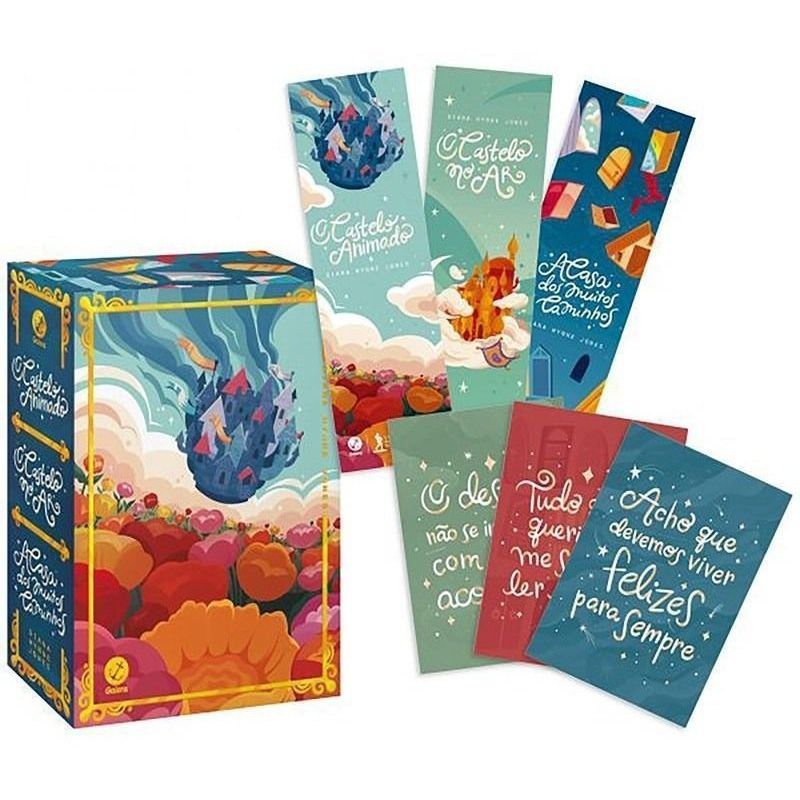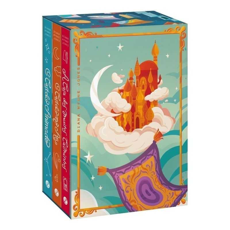 Conheça o universo mágico criado por Diana Wynne Jones, que inspirou a animação O castelo animado do Studio Ghibli. Agora com um novo e lindíssimo projeto gráfico, os três livros da série estão reunidos pela primeira vez em um box rígido acompanhado de marcadores e cards. Nomeado pela revista Times como uma das fantasias mais icônicas de todos os tempos, O castelo animado é um clássico infantojuvenil. Ex-aluna de personalidades como C.S. Lewis e J.R.R. Tolkien, Diana Wynne Jones imprimiu em seus livros a dose necessária de magia e fantasia para que qualquer um, independente da idade, se apaixonasse e se deixasse levar por seus bem construídos e clássicos universos. De um modo ou outro interligadas, as histórias do Box O castelo animado são, definitivamente, o que você precisa para escapar do mundo real e viajar para bem longe: em um tapete diferente, para uma cidade distante, refúgio de poções mágicas, personagens fantásticos e um segredo a cada esquina. Com um projeto gráfico especialmene por Isadora Zeferino (imzeferino), ilustradora carioca dona de trabalhos supercoloridos e com clientes como Faber Castell, Globosat e Melissa, o box é o presente ideal – para alguém que você ama ou, melhor ainda, você mesmo. O castelo animado (368 pág.) Em O castelo animado, primeiro volume série, conheça a história de Sophie Hatter: após, certo dia, ser amaldiçoada pela Bruxa das Terras Desoladas, a jovem se torna uma senhora de 90 anos. Receosa e insegura por conta de sua nova aparência, ela decide fugir de sua família e vai em busca de ajuda e um lugar para ficar. É então que se depara com o castelo do terrível Mago Howl, conhecido por devorar o coração das moças do povoado. No entanto, quanto mais os dias passam, mais Sophie entende que, na verdade, a realidade vai além do que se vê – e percebe que é possível, sim, encontrar humanidade e compaixão dentro de cada um. O castelo no ar (352 pág.) Em O castelo no ar, descubra a história de Abdullah, um jovem mercador de tapetes que se vê, de repente, no meio de uma enorme confusão após um estranho misterioso deixar em sua tenda um tapete dito mágico em troca de uma bagatela. Na manhã seguinte, sua vida e tudo o que ele conhece estão de cabeça para baixo… e ele precisará ter corajoso para enfrentar todos os obstáculos que surgirão nesta excêntrica jornada. A casa dos muitos caminhos (336 pág.) Em A casa dos muitos caminhos, mergulhe na história de Charmain Baker, uma jovem superprotegida pelos pais, apaixonada por livros e que recebe uma repentina tarefa: cuidar da casa de seu tio-avô William Norland, um mago idoso que, por conta de uma doença, precisa sair da cidade em busca de tratamento. Charmain acredita que a obrigação acabará, no fim, valendo a pena: afinal, esta é sua oportunidade perfeita de sair de casa e um dia trabalhar na Biblioteca Real, seu maior sonho. No entanto, ela não fazia ideia que a casa era repleta de magia! Com uma infinidade de portas, quartos e segredos, a estadia na casa de seu tio-avô se torna uma aventura e um mistério cada vez maiores a cada dia que passa.