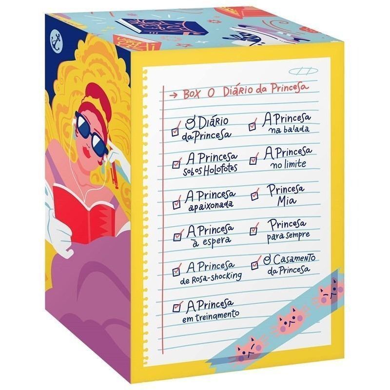A icônica heroína dos anos 2000 é reapresentada ao público nesse lançamento especial, mais delicioso e divertido do que nunca! Acompanhe as aventuras da Princesa Mia em um box inédito de O Diário da Princesa com capas e versos exclusivos de Isadora Zeferino, (@imzeferino), responsável por trabalhos super coloridos e a mente criativa por trás do sucesso do box O Castelo Animado. O box O Diário da Princesa, de Meg Cabot, reúne os onze livros da série best-seller do New York Times em uma edição especial. São seis volumes em uma caixa rígida e estilizada, acompanhada de seis marcadores personalizados. Um verdadeiro fenômeno da cultura pop, os diários da princesa guardam as lembranças e experiências de Mia em toda a essência divertida, cômica e emocional de uma jovem em busca de si mesma, em meio às atribulações da vida e, principalmente, do próprio amadurecimento. Livro 1 – O diário da princesa e A princesa sob os holofotes (352 páginas) O diário da princesa Nada será como antes para Mia Thermopolis, que até ontem pensava ser apenas outra adolescente comum, mas descobriu ser a herdeira de um pequeno principado europeu. Se o sonho de muitas meninas é ser uma princesa, para Mia isso parece um verdadeiro pesadelo. A princesa sob os holofotes Mia Thermopolis já aceitou que é uma princesa, e agora está se preparando para ser apresentada oficialmente ao povo de Genovia. Ela precisará lidar com os holofotes e as responsabilidades da sua realeza. Livro 2 – A princesa apaixonada e A princesa à espera (352 páginas) A princesa apaixonada Tudo parece estar se acalmando na vida da princesa Mia, até que ela precisa lidar com os altos e baixos da sua atribulada vida amorosa. A princesa à espera Mia enfim conseguiu confessar seus sentimentos ao garoto por quem sempre foi apaixonada, e agora a princesa precisará ser honesta sobre seus sentimentos em meio às dúvidas e inseguranças do novo relacionamento. Livro 3 – A princesa de rosa-shocking e A princesa em treinamento (400 páginas) A princesa de rosa-shocking É época de formatura na Escola Albert Einstein. Será que Mia finalmente vai conseguir ir ao baile dos seus sonhos? A princesa em treinamento VOTE MIA PARA PRESIDENTE! Entre aulas de princesa e muitos compromissos reais, a princesa Mia concorre à vaga de Presidente do Conselho Estudantil e embarca em altas aventuras no sexto volume da série O Diário da Princesa. Livro 4 – A princesa na balada e A princesa no limite (400 páginas) A princesa na balada No sétimo livro da série, a versão baladeira da princesa promete poucas e boas, e muitas risadas. A princesa no limite Depois de uma notícia desanimadora, as coisas não vão bem na vida de Mia, e é preciso que tudo se resolva antes que a princesa chegue ao limite. Livro 5 – Princesa Mia e Princesa para sempre (504 páginas) Princesa Mia Quando todos os relacionamentos de Mia são postos à prova e ela precisa tomar uma decisão que pode mudar a vida da família Renaldo para sempre, será a hora de descobrir quem, afinal de contas, é a princesa Mia. Princesa para sempre É o ano de formatura para Mia Thermopolis e o momento de descobrir que final aguarda a princesa mais amada da literatura juvenil. Livro 6 – O casamento da princesa (304 páginas) Oito anos depois dos acontecimentos de Princesa para sempre, a princesa Mia retorna mais madura e pronta para dar passos importantes no último livro da série O Diário da Princesa. Entre preparativos para o próprio casamento e muitas surpresas, a vocação de Mia é posta à prova e a princesa precisa mostrar a todos que tem o que precisa para ser a futura regente de Genovia.