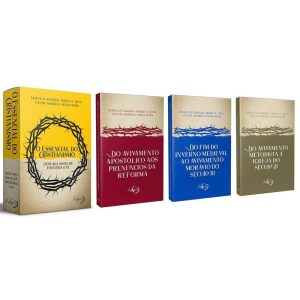 O box O essencial do Cristianismo é composto por três livros sobre a História do cristianismo. Além de apontar os principais fatos, personagens e cenários que determinaram os caminhos da fé professada por mais de 2 bilhões de pessoas, estes livros oferecem uma nova abordagem, destacando as motivações espirituais que moveram as pessoas envolvidas no surgimento da Igreja, sua institucionalização, a busca por reformas, os grandes avivamentos e muito mais. Diferentemente de outras obras escritas no exterior, os autores também abordam o desenvolvimento da fé evangélica em solo brasileiro desde a chegada dos primeiros missionários até a atualidade. Os livros são resultado de um sólido trabalho de pesquisa e da longa experiência dos autores, quase todos brasileiros, nas áreas de educação e liderança cristã. Os três livros são ilustrados com imagens de artes antigas, reproduções e fotos de representações artísticas. Além disso, contam com dezenas de boxes que mostram a evolução da espiritualidade cristã ao longo dos séculos, desde os tempos apostólicos, passando pelos Pais da Fé, reformadores e avivalistas até chegar aos nossos dias. · O surgimento da Igreja com os apóstolos e a espiritualidade na Idade Média. . A Reforma Protestante e os primeiros movimentos avivalistas. · A expansão missionária e o Cristianismo no Brasil e no mundo.