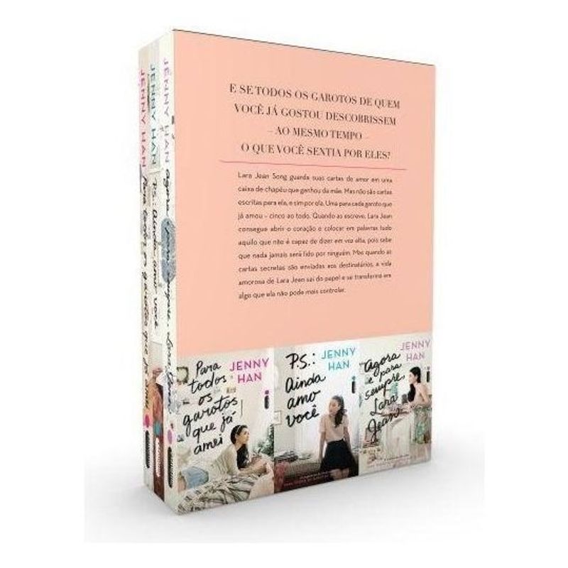 Para todos os garotos que já amei, P.S.: Ainda amo você e Agora e para sempre, Lara Jean são os três volumes de uma trilogia apaixonante que acompanha os altos e baixos da vida de Lara Jean Song, uma menina descendente de coreanos que guarda suas cartas de amor em uma caixa de chapéu que ganhou da mãe. Mas não são cartas escritas para ela, e sim por ela. Uma para cada garoto que Lara Jean já amou – cinco ao todo. Escrevendo, a filha do meio da família Song – uma garota inteligente, planejada e responsável, que tem a receita do cookie perfeito – consegue abrir o coração e colocar em palavras tudo aquilo que não é capaz de dizer em voz alta. São palavras, afinal, que jamais serão lidas por ninguém. Quando, porém, essas cartas secretas são enviadas aos destinatários, a vida de Lara Jean sai do papel e se transforma em algo que ela não pode mais controlar. Algo, talvez, muito mais emocionante.