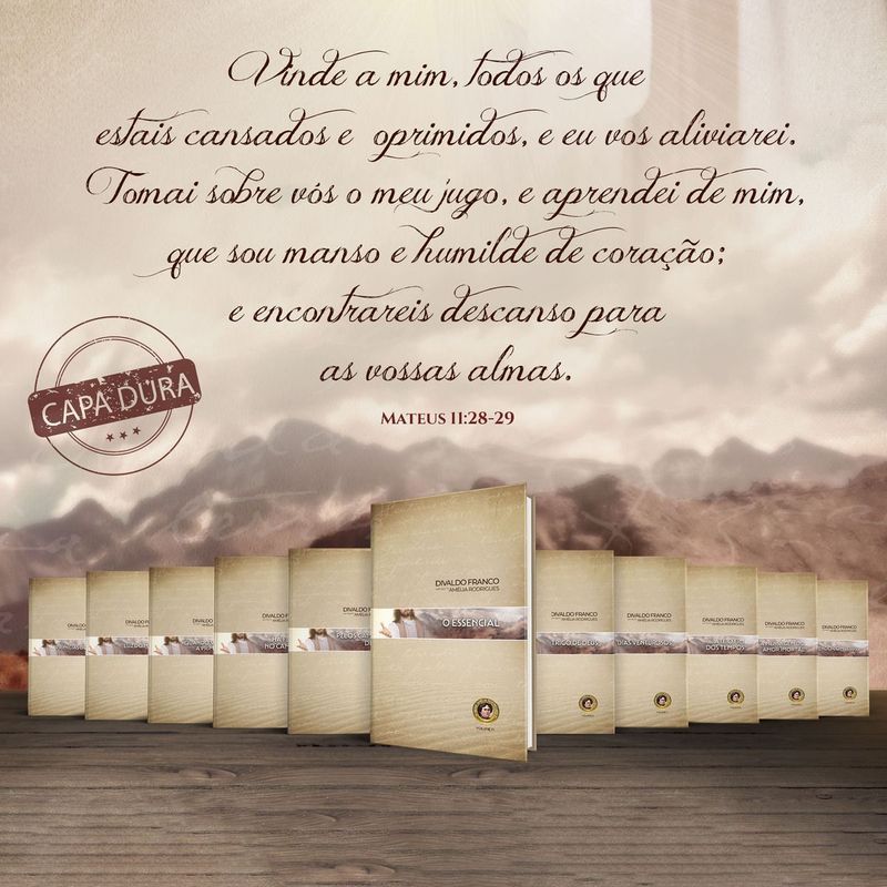 Apresentamos uma série de 11 volumes, ditados pelo Espírito Amélia Rodrigues e psicografados pelo renomado médium e orador espírita Divaldo Franco. Essa coleção exclusiva é encadernada em capa dura, com glossário explicativo, conferindo uma edição especial. Se você busca conhecimento enriquecedor sobre a vida e a espiritualidade, essas obras são uma escolha excepcional. Não perca a oportunidade de explorar os ensinamentos transmitidos nessas páginas, que certamente trarão profundidade e sabedoria para a sua jornada pessoal. Obras que fazem parte deste BOX:- Primícias do Reino- Luz do Mundo- Quando Voltar a Primavera- Há Flores no Caminho – Pelos Caminhos de Jesus – Trigo de Deus- Dias Venturosos – Até o Fim dos Tempos – A Mensagem do Amor Imortal – Vivendo com Jesus- O Essencial