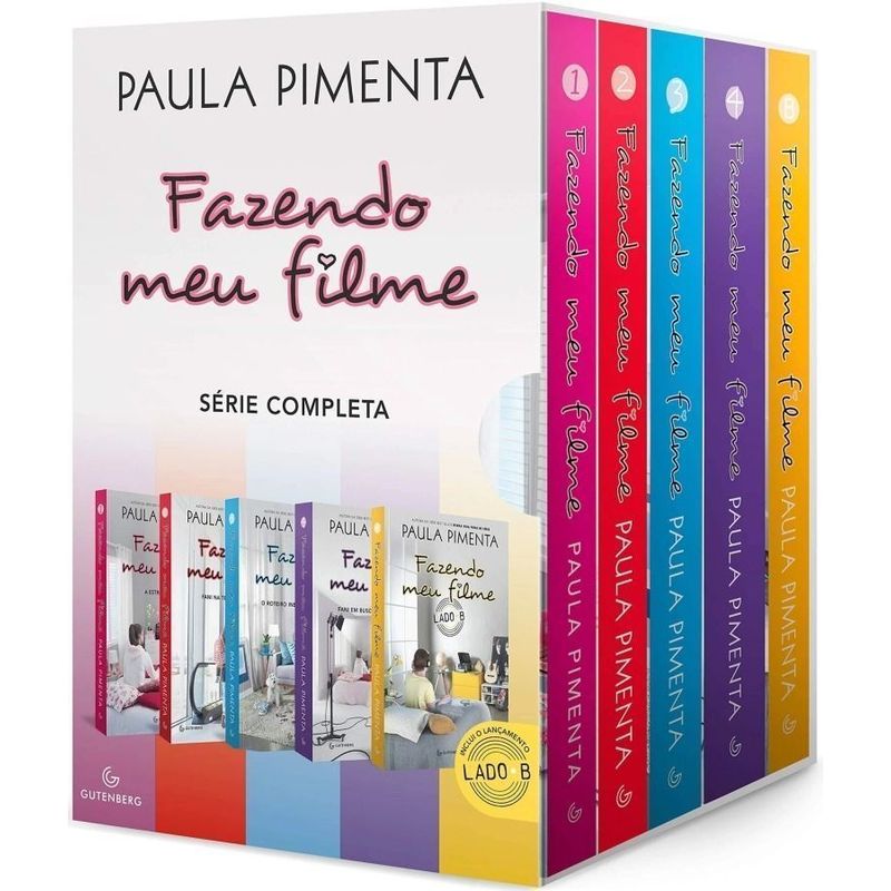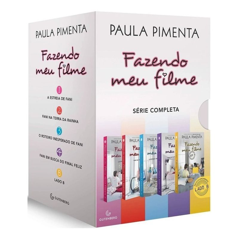 Quando Fazendo meu filme 1 foi lançado, logo caiu no gosto de adolescentes de todo o país. Por causa do sucesso e dos pedidos de leitores por novos livros, Paula Pimenta deu continuidade à história de Fani e Leo, e Fazendo meu filme tornou-se uma série, ganhando outros três volumes. Agora, a Gutenberg lança uma caixa especial com todos os quatro volumes da série e inclui Fazendo meu filme – Lado B, livro em que Leo, o personagem mais amado das fãs, conta sua versão dos fatos até então narrados na perspectiva de Fani. Um presente para você que ama a Paula Pimenta, a Fani, o Leo e todos os personagens da série teen mais aclamada do Brasil.