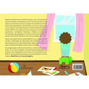 Esta é a história de uma família que viveu o isolamento social durante a pandemia do Covid-19, mas de forma lúdica e divertida valorizou todos os momentos em família, especialmente, com Antônio, a única criança que vivia na casa com três adultos. Todos trabalhavam em home office e no tempo livre brincavam e se divertiam cantando, contando histórias infantis, montando brinquedos de papelão e muitas outras atividades e, ainda, ensinando Antônio como se proteger do vírus. Quem mais aproveitou essa fase foi a vovó, que, dando corda e liberdade às fantasias de Antônio, viveu os seus anseios e a criatividade dele, fazendo com que os dias de todos ?cassem mais leves e felizes. Na imaginação criativa de Antônio, o medo e a tristeza eram vírus que também contaminavam pessoas e só podiam ser combatidos com outro vírus de efeito contrário e esse antígeno sempre vencia a batalha. Assim nasceu Buchilica, o vírus da alegria.
