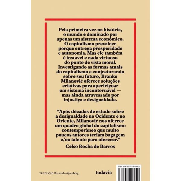 Qual desenho se pode traçar da globalização que temos hoje? Como ela se formou? Quais são as suas características? O que a distingue de períodos anteriores de expansão econômica vocacionados à internacionalização? E os cenários para o futuro? O que fazer para ao menos mitigar as visíveis desigualdades espalhadas por todos os continentes? Ao demonstrar, baseado em farta documentação e análise de dados, que o capitalismo acabou por se tornar o único sistema econômico vigente no planeta após séculos de convivência ou rivalidade com outros modos de produção – com destaque para o feudalismo e o socialismo -, Branko Milanovi? não só responde a essas e outras tantas perguntas, como também oferece uma visão absolutamente original sobre a evolução das sociedades comunistas no Leste Europeu e em outras partes do mundo, com destaque para a China – gigante mundial que constitui hoje, na análise do autor, o exemplo maior do que ele chama de capitalismo político, em contraposição ao capitalismo meritocrático liberal representado, em especial, pelos Estados Unidos. (…) Com erudição e didatismo, Milanovi? mostra as diferenças entre os dois capitalismos predominantes, as formas como se relacionam entre si, de que maneiras se constituem suas desigualdades internas e como eles se manifestam, com características próprias, em todas as regiões do globo. (…)