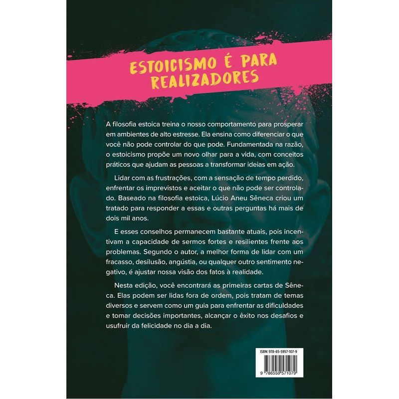 A filosofia estoica treina o nosso comportamento para prosperar em ambientes de alto estresse. Ela ensina como diferenciar o que você não pode controlar do que pode. Fundamentada na razão, o estoicismo propõe um novo olhar para a vida, com conceitos práticos que ajudam as pessoas a transformar ideias em ação. Lidar com as frustrações, com a sensação de tempo perdido, enfrentar os imprevistos e aceitar o que não pode ser controlado. Baseado na filosofia estoica, Lúcio Aneu Sêneca criou um tratado para responder a essas e outras perguntas há mais de dois mil anos. E esses conselhos permanecem bastante atuais, pois incentivam a capacidade de sermos fortes e resilientes frente aos problemas. Segundo o autor, a melhor forma de lidar com um fracasso, desilusão, angústia, ou qualquer outro sentimento negativo, é ajustar nossa visão dos fatos à realidade. Nesta edição, você encontrará as primeiras cartas de Sêneca. Elas podem ser lidas fora de ordem, pois tratam de temas diversos e servem como um guia para enfrentar as dificuldades e tomar decisões importantes, alcançar o êxito nos desafios e usufruir da felicidade no dia a dia.