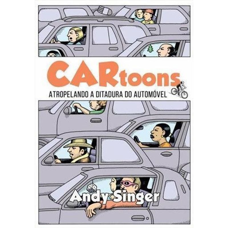 Em apenas um século a opção pelos carros acabou com a qualidade de vida de nossas cidades! E a forma como isso aconteceu não pode ser mais perversa! Não me refiro apenas à propaganda que de forma enganosa associa status, evolução, modernidade, inteligência, conforto e tudo de bom ao felizardo motorista acompanhado de lindas mulheres e suas famílias estupidamente felizes, num filme encenado em cidades desertas e livres de pessoas. Me refiro a ampla deterioração de tudo que envolve a circulação desses seres de lata. Esse século dos automóveis catalisou de tal forma o individualismo inerente as pessoas, que deformou e cegou algumas gerações nas sociedades. (…) É preciso muita convicção e persistência para resistir, além de inspiração e informação! Andy Singer em Cartoons nos provê tudo isso e muito mais. Um humor extra que não sei de onde ele tira! – Renata Falzoni, fotógrafa, videorrepórter, bikerrepórter e cicloativista.