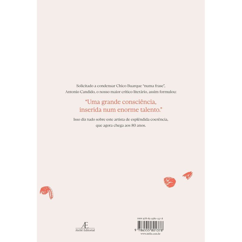 Em comemoração aos 80 anos de Chico Buarque, a professora Adelia Bezerra de Meneses, ganhadora do Prêmio Jabuti de 1982 com o aclamado livro Desenho Mágico, análise das canções de Chico contra a ditadura da época, nos traz mais um livro abrangente: Chico Buarque ou a Poesia Resistente. Esse novo livro de Adelia Bezerra de Meneses analisa as recentíssimas canções de Chico Buarque, como Que Tal um Samba?, As Caravanas, Massarandupió, Tua Cantiga, bem como outras, paradigmáticas, de CDs anteriores (embora recentes): Renata Maria, Tempo e Artista, Sinhá, e a trilogia que integra o livro Terra de Sebastião Salgado: Levantados do Chão, Assentamento e Fantasia (aferidos a um texto inédito de Antonio Candido, sobre o MST). A abordagem de Tempo e Artista, uma canção que tematiza o aspecto criador do “tempo”, torna-se singularmente sugestiva no contexto das comemorações dos oitenta anos do Autor. Projeto Gráfico: Negrito Design Capa: Casa Rex Ilustrado em cores