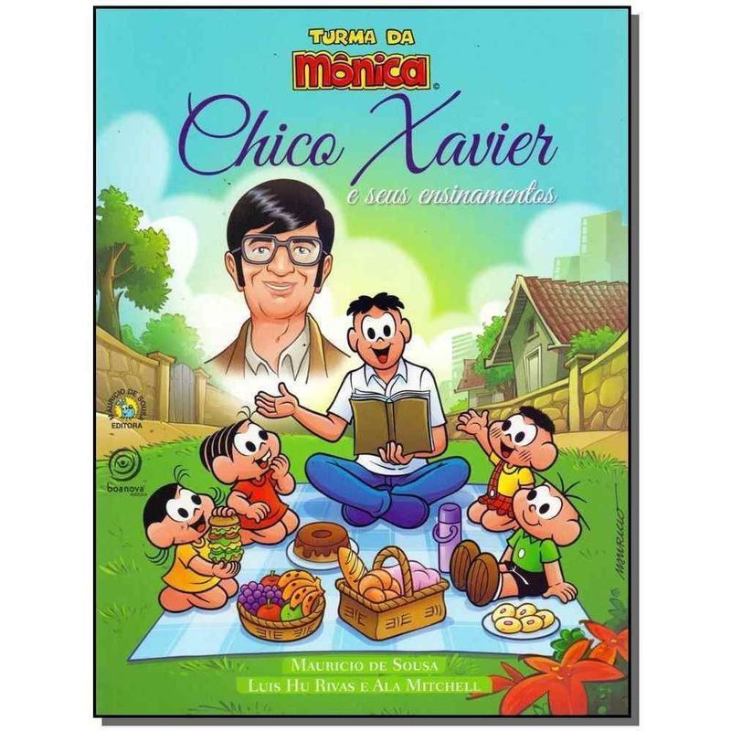 Neste livro, a Turma da Mônica conhece os exemplos iluminados de um dos maiores brasileiros de todos os tempos, apresentadas por André, primo de Cascão. “Chico Xavier e seus ensinamentos” mostra como, em pequenas situações do dia a dia, Chico conseguia oferecer grandes lições de amor ao próximo, agora contadas em histórias com os personagens mais queridos do Brasil.