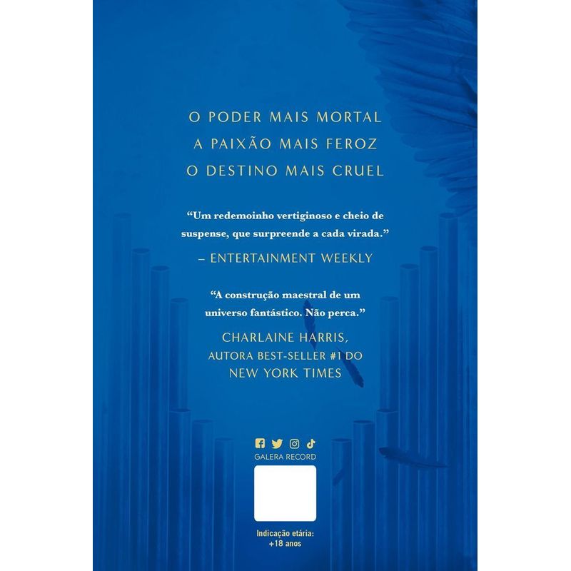 Casa de céu e sopro é a sequência poderosa de Casa de terra e sangue, da série new adult Cidade da Lua Crescente. Uma narrativa potente de Sarah J. Maas, a autora best-seller #1 do The New York Times, repleto de fantasia, mistério, batalhas e, principalmente, romances inebriantes. O poder mais mortal. A paixão mais feroz. O destino mais cruel. Bryce Quinlan e Hunt Athalar fizeram um pacto. Enquanto processam os eventos da última primavera, eles irão manter as coisas… platônicas… até o solstício. Eles salvaram a Cidade da Lua Crescente, mas com tanto frenesi acontecendo ultimamente, eles desejam, mais do que qualquer coisa, uma oportunidade de relaxar. Desacelerar. E descobrir o que o futuro lhes reserva. Mas quando a tensão suspensa entre os dois alcançar um nível insustentável, prestes a incendiar a Cidade da Lua Crescente, eles serão capazes de resistir? Enquanto isso, para os dois, a iminência do perigo não está ainda fora de questão. Arrastados para um movimento rebelde do qual não querem tomar partido, Bryce, Hunt e seus amigos veem a si mesmos contra os sinistros asteri – de quem, custe o que custar, precisam evitar ser percebidos. No entanto, quanto mais conhecem as causas desse movimento revolucionário, mais se aproximam de uma inevitável escolha: permanecer quietos enquanto outros são oprimidos… ou lutar. E eles nunca foram muito bons em manter silêncio. Nessa sequência sexy e cheia de ação do best-seller Casa de terra e sangue, Sarah J. Maas constrói uma história cativante sobre um universo prestes a explodir – e sobre os que não medirão esforços para protegê-la. “Temperado com uma trama coesa e construção atmosférica do mundo… uma delícia cada virar de página.” – The Guardian “Sarah J. Maas não decepciona em sua primeira série para adultos… Um livro para ser saboreado.” – Daily Mail Classificação indicativa: 18 anos
