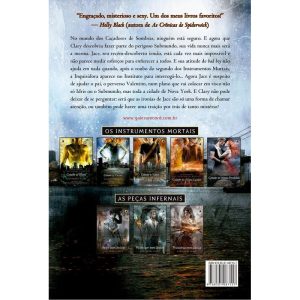 “Em Cidade das cinzas, sequência de tirar o fôlego de Cidade dos ossos, Cassandra Clare atrai seus leitores de volta às garras sombrias do submundo de Nova York, onde o amor nunca é seguro e o poder se torna a tentação mais mortal. Clary Fray só queria que sua vida voltasse ao normal. Mas o que é “”normal”” quando você é uma Caçadora de Sombras assassina de demônios, sua mãe está em um coma magicamente induzido e você de repente descobre que criaturas como lobisomens, vampiros e fadas realmente existem? Se Clary deixasse o mundo dos Caçadores de Sombras para trás, isso significaria mais tempo com o melhor amigo, Simon, que está se tornando mais do que só isso. Mas o mundo dos Caçadores não está disposto a abrir mão de Clary – especialmente o belo e irritante Jace, que por acaso ela descobriu ser seu irmão. E a única chance de salvar a mãe dos dois parece ser encontrar o perverso ex-Caçador de Sombras Valentim, que além de perverso e insano, é também o pai de Clary e Jace. Para complicar ainda mais, alguém na cidade de Nova York está matando jovens do Submundo. Será que Valentim está por trás dessas mortes? E se sim, qual é o seu objetivo? Quando o segundo dos Instrumentos Mortais, a Espada da Alma, é roubada, a aterrorizante Inquisidora chega ao Instituto para investigar – e suas suspeitas caem diretamente sobre Jace. Como Clary pode impedir os planos malignos de Valentim se Jace está disposto a trair tudo aquilo em que acredita para ajudar o pai? Nessa sequência de tirar o fôlego da série Os Instrumentos Mortais, Cassandra Clare atrai os leitores de volta para o lado mais obscuro do submundo de Nova York, onde amar nunca é seguro e o poder se torna a mais mortal das tentações. Sombrio, engraçado e sexy, Cidade das Cinzas é o segundo volume da série Os instrumentos mortais, de Cassandra Clare, que virou um verdadeiro fenômeno mundial e vendeu mais de 50 milhões de exemplares. “”Engraçado, misterioso e sexy. Um dos meus livros favoritos!”” – Holly Black “