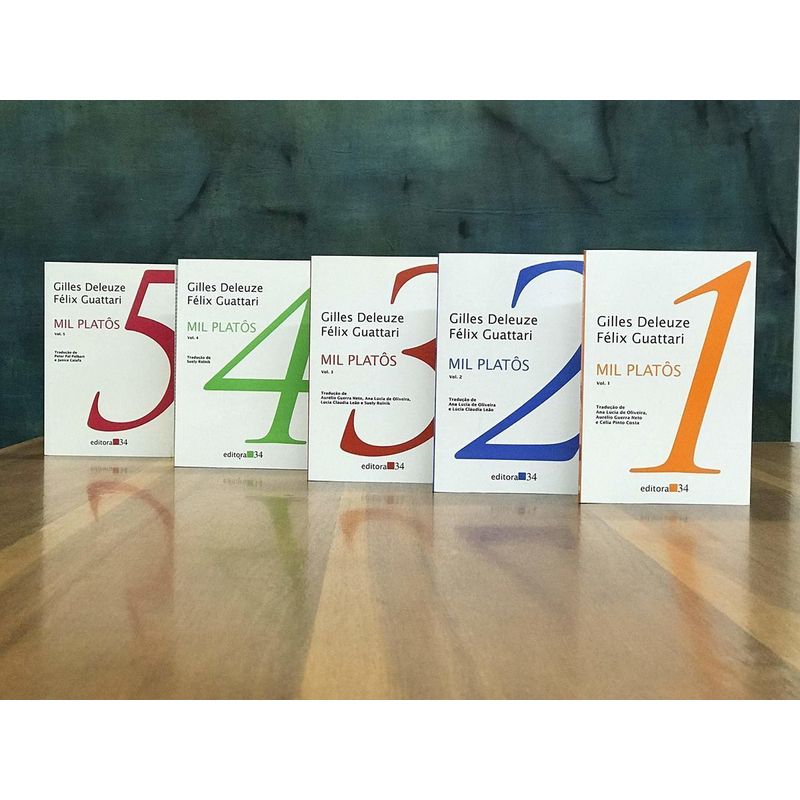 Mil platôs, publicado em 1980, é mais uma colaboração entre Gilles Deleuze e Félix Guattari, e dá sequência às teses de O anti-Édipo (1972), contendo todos os componentes de um tratado de filosofia clássica: ontologia, física, lógica, psicologia, moral, política e estética. A obra é organizada em quinze “platôs”, que podem ser lidos de forma independente. Conjunto de livros envoltos em plástico transparente, não é BOX.
