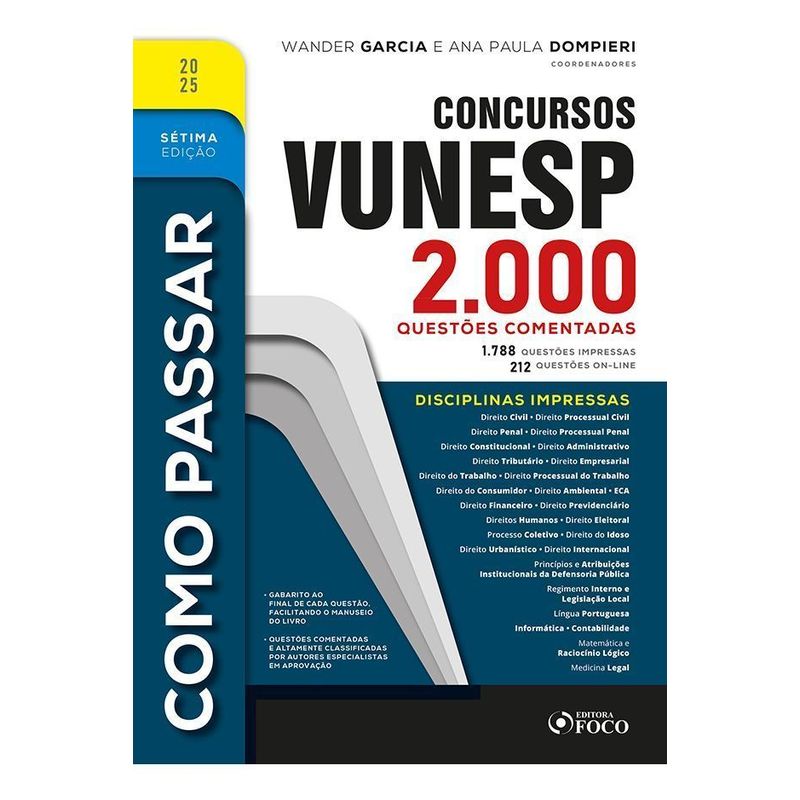 Título do livro : Como Passar em Concursos Vunesp – 2.000 Questões Comentadas – 7ª Ed -2025