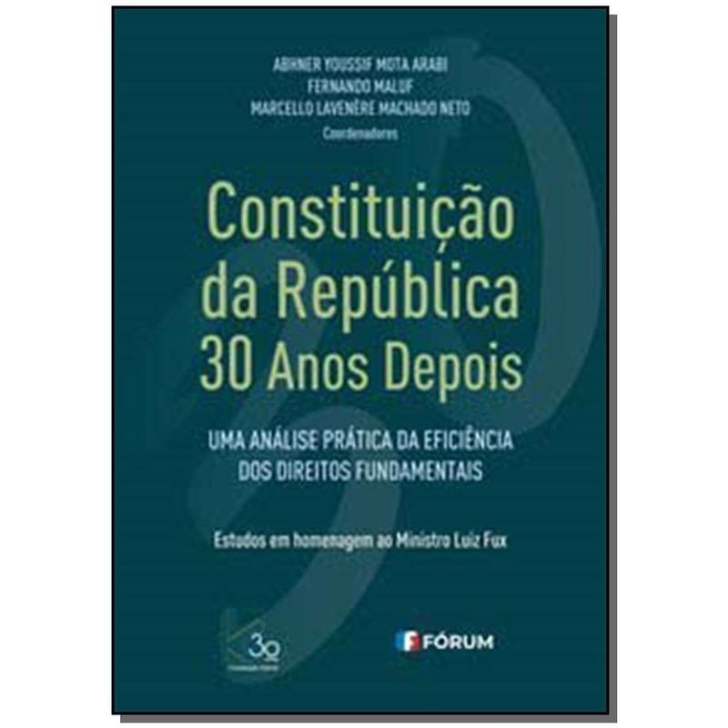 Em 5 de outubro de 1988, um novo marco se instaurava na história constitucional brasileira. A sétima Constituição de nossa história ali se apresentava com a pretensão de inaugurar novos tempos em nossa nação, propugnando por valores que conduziriam, durante sua concretização, a uma maior promoção da cidadania e da igualdade material. Em 2018, nossa Constituição chega aos 30 anos. Já é a segunda mais longeva de nosso período republicano e apresenta, ainda, perspectiva de longos anos de vigência. Além de ser este um momento de celebração de seu aniversário, é tempo também de se fazer um balanço entre aquilo que o texto prometia, aquilo que se conseguiu alcançar e os pontos em que ainda podemos – e devemos – avançar. O que será que constituímos nesses 30 anos? Marcada por sua extensão e pela diversidade de temas que abrange, apresentava já desde sua origem um extenso rol de direitos fundamentais, um de seus pilares mais essenciais. Estes são o foco principal desta obra coletiva, elaborada e concretizada a várias mãos: uma coletânea de artigos que se destina ao estudo da evolução prática e da eficiência da aplicação de diversos direitos fundamentais ao longo dos 30 anos da Constituição da República, notadamente no tocante à atuação do Supremo Tribunal Federal. Os estudos são realizados em homenagem ao Ministro Luiz Fux, como gesto que todos os coautores ora fazemos aos seus muitos anos de vida pública e de serviços prestados ao país, bem como à sua cotidiana luta pela concretização dos direitos fundamentais, a partir de sua longa e respeitosa atuação perante os mais diversos órgãos do Poder Judiciário. É com muita alegria que lançamos, então, ao público esta obra coletiva, na expectativa de contribuir ao contínuo progresso e à concretização dos direitos fundamentais.