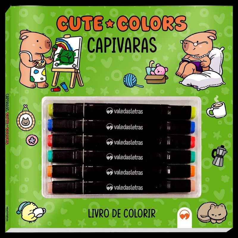 Explore o mundo encantador das capivaras com o Cute Colors – Capivaras:Livro de Colorir com 6 Canetinhas, Ilustrações de Capivaras e Lâmina de Acetato, um livro irresistível para crianças, jovens e adultos que amam momentos criativos e relaxantes. São 64 páginas com 32 ilustrações de capivaras em cenas divertidas, aconchegantes e cheias de charme.