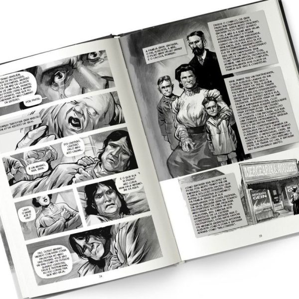 A pesquisa de Schechter, que organiza magistralmente todas essas informações, é transposta em imagens pela mão habilidosa de Powell. Um quadrinista inteligente na narrativa e de grande poder expressivo, Eric Powell acentua os elementos mais sombrios e chocantes da história de Gein, transformando crime real em uma poderosa e inescapável narrativa de horror. Uma reflexão poderosa sobre o que pode levar uma pessoa a cometer tais atrocidades, e que ajuda a compreender o fascínio obscuro que esse personagem tão singular e sombrio ganhou na história americana e na cultura pop.
