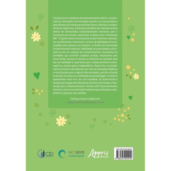 O autismo é um transtorno do desenvolvimento infantil, caracterizado por alterações nas interações sociais e na comunicação e pela presença de interesses restritos, fixos e intensos e comportamentos repetitivos. A literatura científica tem indicado os bons efeitos de Intervenções Comportamentais Intensivas para o tratamento do autismo, conhecidas no Brasil como “tratamento ABA”. O objetivo deste livro/manual é auxiliar familiares, educadores e profissionais a estruturar o ensino de habilidades de autocuidados para pessoas com autismo, no âmbito da Intervenção Comportamental Intensiva. Habilidades de autocuidados constituem-se em um conjunto de comportamentos necessários às atividades que envolvem cuidados consigo, necessários para tomar banho, escovar os dentes ou alimentar-se. Aprender esse tipo de habilidade é importante para o desenvolvimento motor, cognitivo, social e para a independência. Neste livro, os procedimentos de ensino são descritos por meio de ilustrações didáticas e há protocolos para o registro das atividades, que têm a função de auxiliar no ensino e na verificação da aprendizagem. O material apresentado neste livro, em sua totalidade, foi desenvolvido e testado pela equipe de profissionais do Centro de Estudos e Intervenção para o Desenvolvimento Humano (CEI Desenvolvimento Humano), que é uma instituição brasileira especializada no atendimento a pessoas com autismo.