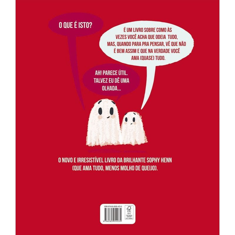 Sabe quando parece que você odeia tudo? O carismático Eu odeio tudo, de Sophy Henn, vai ajudar com esse sentimento! Com um grande amigo ao lado, esse fantasminha mal-humorado vai aprender a enxergar as belezas da vida. Você já acordou um dia e sentiu que odiava TUDO? Já? É exatamente assim que esse fantasminha mal-humorado se sente depois de um dia ruim. Mas ainda bem que ele tem um amigo para conversar sobre isso e ajudá-lo a perceber que, se ele não odeia bolo, ou flores, ou se fantasiar, e definitivamente não odeia seu amigo, então talvez ele não odeie TUDO – e até ame algumas coisas. Com ilustrações irresistíveis e uma narrativa que aquece o coração, Eu odeio tudo é um abraço para crianças e adultos que já sentiram vontade de se isolar, mas encontraram nos amigos um motivo para sorrir. Eu odeio tudo celebra, com leveza e humor, o valor de reconhecer as pequenas alegrias ao nosso redor, mesmo nos momentos mais difíceis. É um convite para acolhermos nossas emoções e celebrarmos as belezas simples da vida. Prepare-se para rir, refletir e, quem sabe, descobrir que odiar tudo não é tão fácil assim!