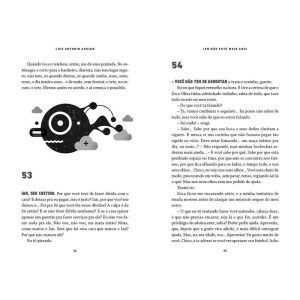 “Morreu jovem demais, nas mãos de traficantes de drogas. O que aconteceu com ele? “Executado”, disseram. “Hora errada, lugar errado.” Este era Ian. Primogênito de Cosme e Roberta, namorado de Sofi a, irmão mais velho e melhor amigo de Chico… E agora Ian não está mais aqui. Arrasado com a morte do irmão, Chico mergulha acidentalmente no universo sombrio da cocaína. O contato com a violência do tráfi co de drogas faz com que ele descubra mais sobre si mesmo, sobre seus pais, sobre o irmão e principalmente sobre a coragem que temos que ter para tocar a vida.”