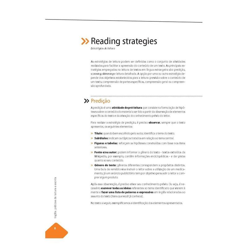 O domínio da língua inglesa é essencial para uma carreira de sucesso em qualquer área. O objetivo deste livro é suprir, com eficiência, a necessidade de construção de conhecimentos relacionados à produção textual em língua inglesa exigida dos alunos da área técnica. Inglês: práticas de leitura e escrita oferece atividades que constroem uma interface entre os gêneros textuais acadêmicos tradicionais e aqueles recorrentes das áreas técnicas exigidos em diversas áreas do conhecimento, como textos de e-mail, resumos de artigos científicos (abstract) e descrições de produtos.