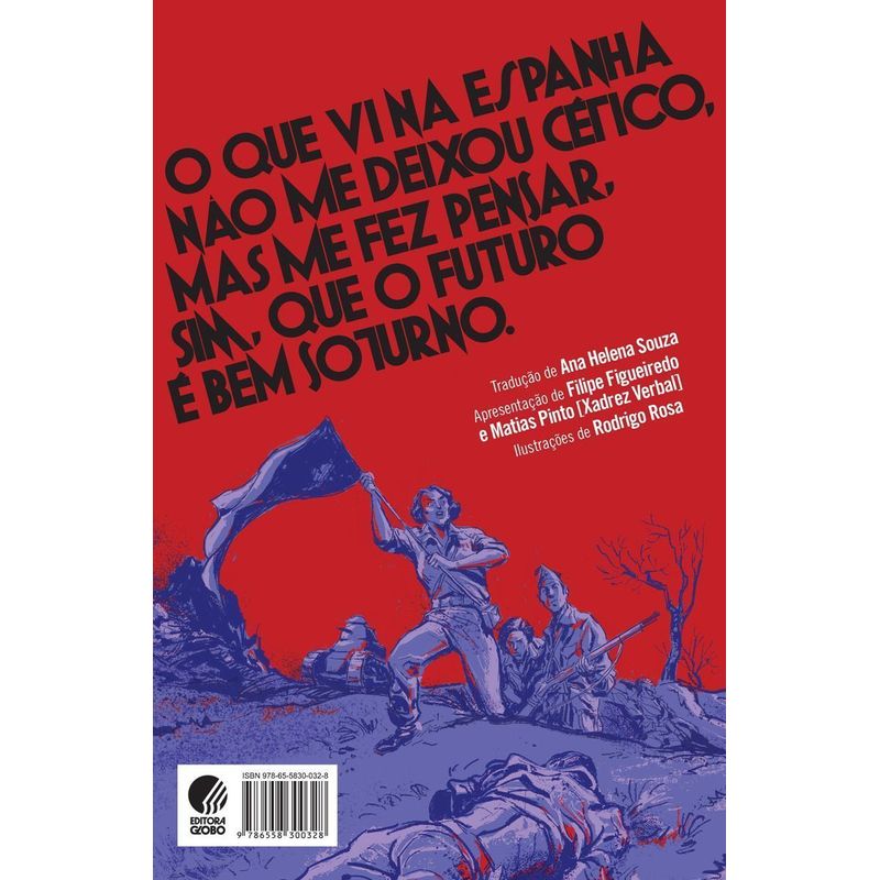 A obra que reúne as memórias de George Orwell sobre sua participação na Guerra Civil Espanhola, com texto de apresentação de Filipe Figueiredo e Matias Pinto, do Xadrez Verbal Um misto de relato autobiográfico, narrativa de guerra e literatura de viagem, Lutando na Espanha junta dois livros: Homenagem à Catalunha e Recordando a Guerra Civil Espanhola Em dezembro de 1936, pouco antes da Segunda Guerra Mundial, a Espanha vivia um conflito armado. Aos 33 anos, George Orwell viaja para a Catalunha a fim de fazer a cobertura jornalística da Guerra Civil, mas quase de imediato se alista nas brigadas populares para combater o exército fascista do general Franco: “Naquele tempo e naquela atmosfera parecia a única coisa imaginável a se fazer”. Misto de relato autobiográfico, narrativa de guerra e literatura de viagem, a que se soma também a análise geopolítica de seu tempo, Lutando na Espanha é a reunião de dois livros: Homenagem à Catalunha e Recordando a Guerra Civil Espanhola. Esta edição, com tradução de Ana Helena Souza, apresentação de Filipe Figueiredo e Matias Pinto – Xadrez Verbal – e ilustrações de Rodrigo Rosa, acompanha uma seleção de cartas, resenhas e comentários de Orwell sobre suas memórias do conflito, seus comentários à imprensa e trocas de cartas afetivas sobre o período que mudou definitivamente sua percepção de mundo. Pouco antes de morrer, em 1949, afirmou que “toda linha de texto sério que escrevi desde 1936 foi escrito, direta ou indiretamente, contra o totalitarismo”. Os textos contidos em Lutando na Espanha nos mostram a formação de um escritor e humanista, sensível aos fenômenos de seu tempo.