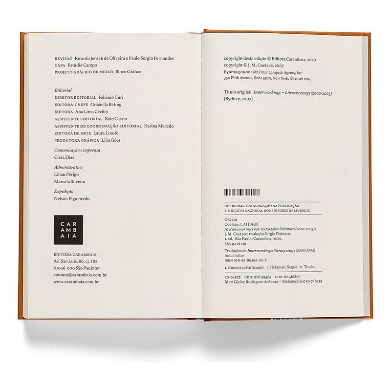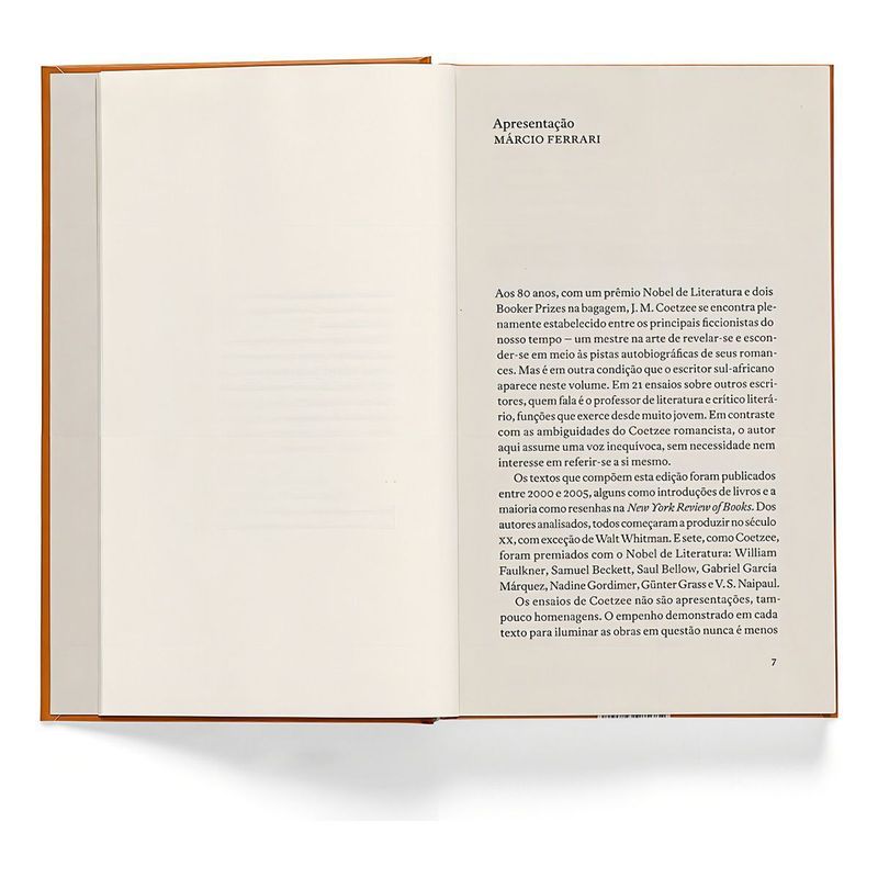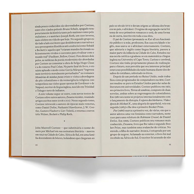 Além de ser um dos principais romancistas vivos, premiado em 2003 com o Nobel, o sul-africano J. M. Coetzee é também autor de refinados ensaios. Mecanismos internos – textos sobre literatura (2000-2005) reúne 21 textos do romancista sobre outros escritores. Neles, quem fala é o professor de literatura e crítico literário, funções que o autor octagenário exerce desde muito jovem. Os textos que compõem a edição foram publicados entre 2000 e 2005, alguns como introduções de livros e a maioria como resenhas na New York Review of Books. Dos autores analisados, todos começaram a produzir no século XX, com exceção de Walt Whitman. E sete, como Coetzee, foram premiados com o Nobel de Literatura: William Faulkner, Samuel Beckett, Saul Bellow, Gabriel García Márquez, Nadine Gordimer, Gu¨nter Grass e V. S. Naipaul. Também tem um peso importante a vivência dos totalitarismos da primeira metade do século XX, sobretudo nos autores de língua alemã, como Robert Musil e Walter Benjamin. Os ensaios de Coetzee não são apresentações, tampouco homenagens. O empenho demonstrado em cada texto para iluminar as obras em questão nunca é menos que rigoroso. Coetzee compara traduções e biografias, passa em revista as referências intelectuais e leituras dos autores analisados, busca paralelos em outras obras e encontra influências insuspeitas. Extremamente contido em suas aparições e declarações públicas, Coetzee não se esquiva de dar opiniões nos ensaios deste livro, criando um impressionante painel de conquistas e frustrações da literatura contemporânea ao testar limites, como ele próprio faz em sua obra mais recente. A este volume segue-se outro, com novos textos de Coetzee sobre outros autores, Ensaios recentes, reunindo artigos escritos entre 2006 e 2017. Nesse segundo tomo, Coetzee retrocede a autores de épocas mais remotas, como Daniel Defoe, Nathaniel Hawthorne, J. W. Goethe, Gustave Flaubert e Liev Tolstói, e retorna a outros três: Walser, Beckett e Philip Roth, entre outros. As capas dos dois volumes, baseadas em composições tipográficas, são de autoria do Estúdio Campo. Os livros saem pelo selo Ilimitada, cujo projeto gráfico é do Bloco Gráfico. A tradução é de Sergio Flaksman e os textos de apresentação são do jornalista Márcio Ferrari. Ambos os volumes trazem índices remissivos com a relação dos autores e obras citados.