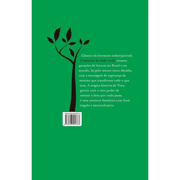 Clássico da literatura infantojuvenil, O Menino do Dedo Verde encanta gerações de leitores no Brasil e no Mundo, há pelo menos cinco décadas, com a mensagem de esperança do menino que transforma tudo o que toca. A mágica história de Tistu, garoto com raro poder de semear o bem por onde passa, é uma aventura fantástica com final singelo e extraordinário.