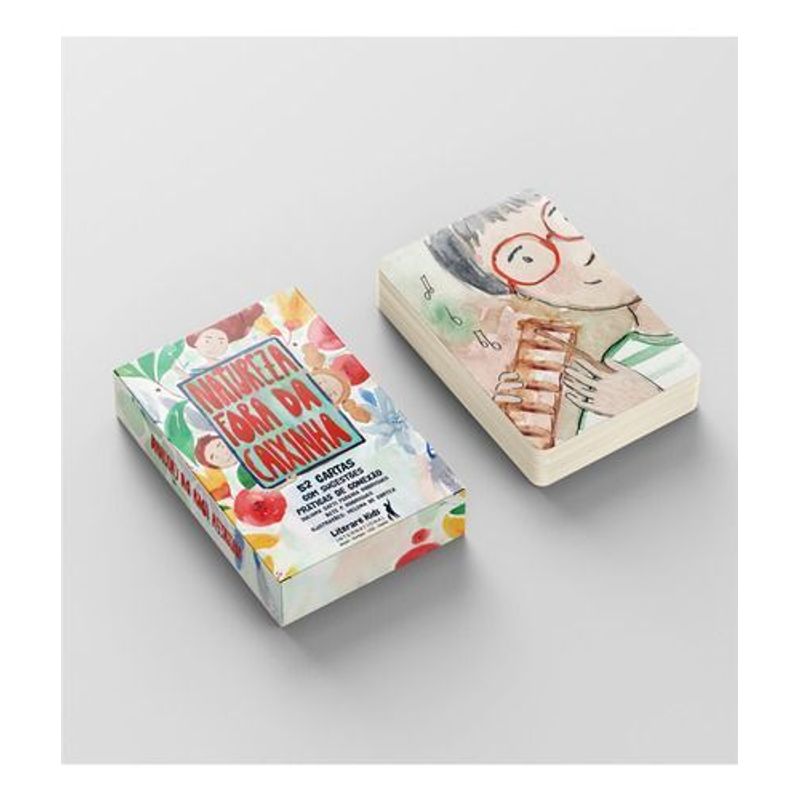 O conjunto de 52 cartas foi criado como ferramenta complementar ao livro “Natureza fora da caixinha: ideias para mais tempo em contato com a natureza”. Crianças, adolescentes, jovens e adultos – pessoas de todas as idades – podem aproveitar os benefícios para o corpo e mente proporcionados pelas infinitas possibilidades de contato diário com a natureza. As cartas oferecem um caminho como suporte para desenvolver atividades simples no dia a dia e, assim, desfrutar um maior nível de intimidade e conexão com a nossa natureza. Um convite para o contato com elementos, seres, paisagens e práticas essenciais, que muitas vezes podem passar despercebidas. São 4 estações, 12 meses e 52 semanas em um ano – uma carta por semana.