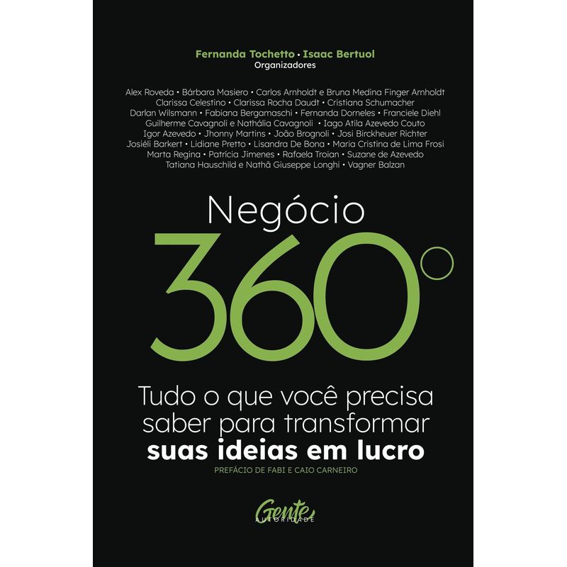 NEGÓCIO 360° É A OPORTUNIDADE DE AMPLIAR O SEU UNIVERSO DE POSSIBILIDADES E MUDAR JOGO! Em Negócio 360º, Fernanda Tochetto e Isaac Bertuol reúnem alguns dos maiores nomes da atualidade em desenvolvimento pessoal e profissional para que respondam a uma pergunta fundamental: o que é possível fazer para destravar, sair do rascunho e construir uma vida plena de realizações em todas as áreas da vida? Por meio de capítulos valiosos que abrangem desde gestão até mindset – passando por liderança, finanças, contabilidade, assessoria de imprensa, marketing digital, liberdade empresarial, estratégia, cultura organizacional, investimentos e desenvolvimento de casais –, você será capaz de desenvolver uma visão panorâmica e estratégica do seu negócio. Com estes 31 experts, você aprenderá: Como a inteligência emocional é decisiva para que você avance e tome melhores decisões em sua vida pessoal e profissional; Quais são os segredos de gestão e liderança para que os negócios prosperem e estejam alinhados com os objetivos de futuro do empreendedor; Ferramentas únicas para fazer com que assessoria de imprensa, contabilidade e marketing digital deixem de ser um problema e se transformem em soluções bem-sucedidas; Quais são as técnicas fundamentais de estratégia e cultura organizacional para que você tenha um motor propulsor de resultados; Como tirar a sua vida e o seu negócio do rascunho e fazer com que os resultados sejam tangíveis e duradouros. VOCÊ ESTÁ PRONTO PARA DESTRAVAR ESSA VISÃO E ALCANÇAR SEUS OBJETIVOS?