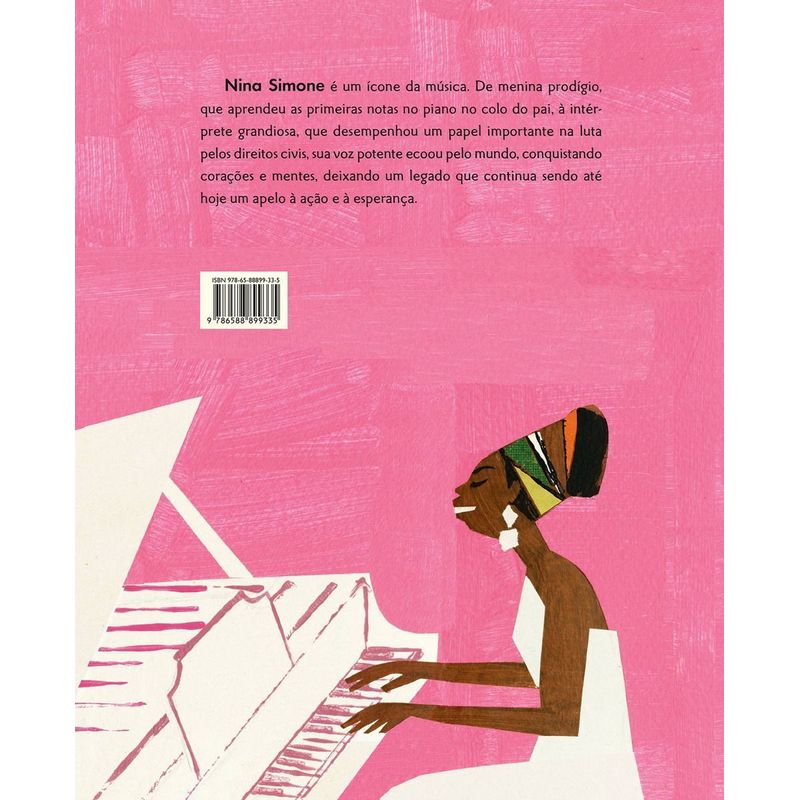 Uma biografia literária e ilustrada, para jovens leitores, de um dos maiores talentos da música norte-americana. Nina Simone é um ícone da música. Mas, antes de ser Nina Simone, ela era Eunice Kathleen Waymon, uma menina prodígio que aprendeu as primeiras notas no piano no colo do pai. Quando as portas se fecharam por causa da cor de sua pele, ela compreendeu que seu talento poderia não ser suficiente para alcançar seus objetivos. Nina ocultou sua mágoa e perseverou, encontrando uma maneira de se expressar apesar dos obstáculos. Mas, enquanto alcançava fama internacional, pessoas negras eram perseguidas nas ruas por se manifestarem em defesa de suas próprias vidas. Nina se juntou a elas, em protesto, levantando sua voz estrondosa na luta contra a desigualdade e a discriminação racial. Ao exigir justiça, seu clamor ecoou por todo o mundo, e seu legado continua sendo até hoje um apelo à ação e à esperança. Indicado para leitores a partir de 9 anos.