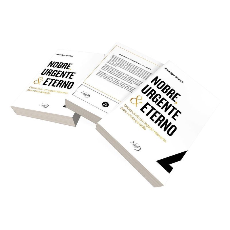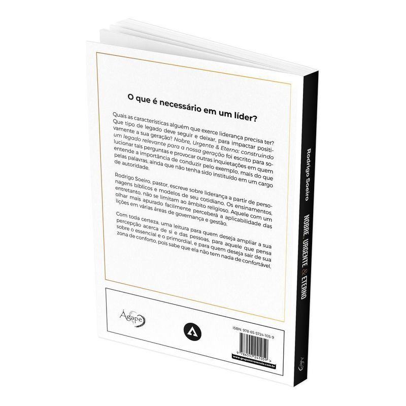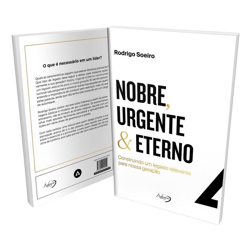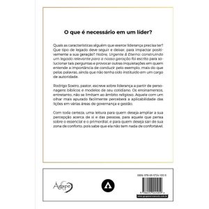 Quais as características alguém que exerce liderança precisa ter? Que tipo de legado deve seguir e deixar, para impactar positivamente a sua geração? Nobre, Urgente & Eterno: construindo um legado relevante para a nossa geração foi escrito para solucionar tais perguntas e provocar outras inquietações em quem entende a importância de conduzir pelo exemplo, mais do que pelas palavras, ainda que não tenha sido instituído em um cargo de autoridade. Rodrigo Soeiro, pastor, escreve sobre liderança a partir de personagens bíblicos e modelos de seu cotidiano. Os ensinamentos, entretanto, não se limitam ao âmbito religioso. Aquele com um olhar mais apurado facilmente perceberá a aplicabilidade das lições em várias áreas de governança e gestão.