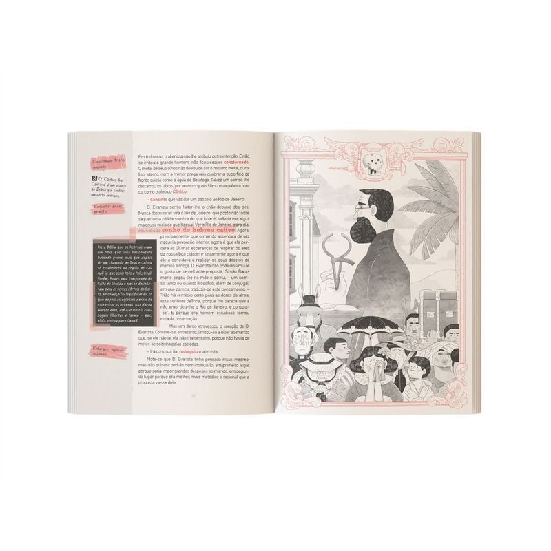 Escrito em folhetins e publicado em 1882, este clássico da literatura brasileira é considerado o precursor do Realismo, ao lado de Memórias Póstumas de Brás Cubas. Se você não cismar de sofrer com a língua que é diferente do português que a gente usa hoje em dia, vai se divertir a valer com esta história que aborda os limites da normalidade e da anormalidade, sob as lentes de Simão Bacamarte, o médico alienista que passa a estudar a saúde psicológica da população de Itaguaí. Nesta edição especial você tem o texto integral acompanhado de explicações e links bem espertos que o ajudarão a compreender melhor a trama, diferentes estilos de ilustrações e um informativo com o mapa dos personagens para você lembrar quem é quem na narrativa de Machado de Assis.