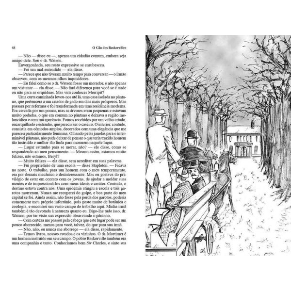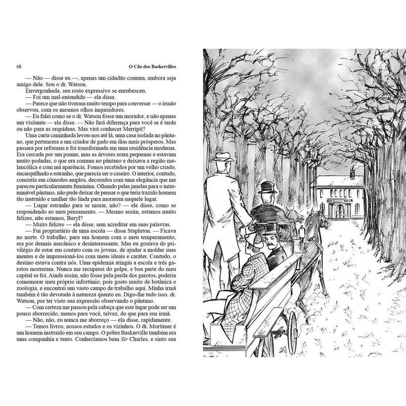 A morte do rico proprietário Charles Baskerville está relacionada a um mistério que envolve uma antiga maldição de família, uma grande herança e um enorme cão fantasmagórico. Holmes e seu assistente Watson são chamados para investigar. Uma das mais famosas histórias do detetive Sherlock Holmes.