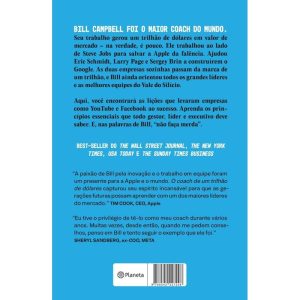 Bill Campbell foi o maior coach do mundo. Seu trabalho gerou um trilhão de dólares em valor de mercado – na verdade, é pouco. Ele trabalhou ao lado de Steve Jobs para salvar a Apple da falência. Ajudou Eric Schmidt, Larry Page e Sergey Brin a construírem o Google. As duas empresas sozinhas passam da marca de um trilhão, e Bill ainda orientou todos os grandes líderes e as melhores equipes do Vale do Silício. Aqui, você encontrará as lições que levaram empresas como YouTube e Facebook ao sucesso. Aprenda os princípios essenciais que todo gestor, líder e executivo deve saber. E, nas palavras de Bill, “não faça merda”. “A paixão de Bill pela inovação e o trabalho em equipe foram um presente para a Apple e o mundo. O coach de um trilhão de dólares capturou seu espírito incansável para que as gerações futuras possam aprender com um dos maiores líderes do mercado.” – TIM COOK, CEO, Apple “Eu tive o privilégio de tê-lo como meu coach durante vários anos. Muitas vezes, desde então, quando me pedem conselhos, penso em Bill e tento seguir o exemplo que ele foi.” – SHERYL SANDBERG, COO, META