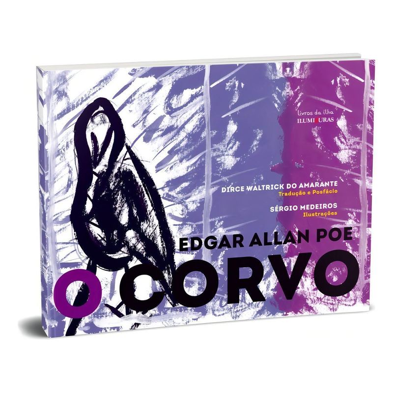 O contista e poeta norte-americano Edgar Allan Poe (1809-1849) é considerado hoje um dos maiores mestres do horror, tendo escrito contos célebres que já viraram filmes, histórias em quadrinhos etc. Como poeta, conheceu enorme sucesso na sua época, sobretudo como autor do poema longo “O corvo”, publicado em 1845, no qual um homem solitário tenta conversar com a ave sinistra que o visita inesperadamente numa noite silenciosa. Tendo sido traduzido para o português por nomes importantes, como Machado de Assis e Fernando Pessoa, esse poema continua sendo bastante lido no Brasil. No entanto, as traduções em geral destinam-se ao público adulto. Desta vez, porém, Dirce Waltrick do Amarante, ficcionista e especialista em literatura infantojuvenil, fez uma versão diferente, a partir do original em inglês, destinada às crianças e utilizando uma linguagem acessível a esse público, sem abrir mão, no entanto, do mistério e da ambiguidade que caraterizam o poema em inglês. As ilustrações dsta edição, inspiradas nas gravuras de Paul Gauguin e no cinema expressionista, são do poeta e artista plástico Sérgio Medeiros.
